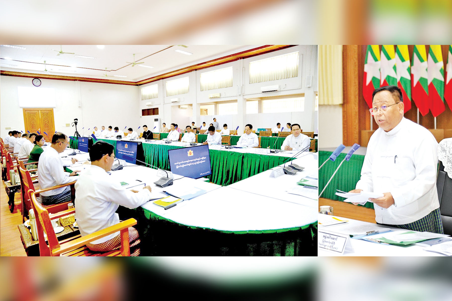 ယင်းနောက် ဦးဆောင်အဖွဲ့ အဖွဲ့ဝင်ပြည်ထောင်စုဝန်ကြီးများ၊ နေပြည်တော်ကောင်စီဥက္ကဋ္ဌ၊ တိုင်းဒေသကြီးနှင့် ပြည်နယ်ဝန်ကြီးချုပ်များနှင့် တက်ရောက်လာသူများက သက်ဆိုင်ရာ ကဏ္ဍအလိုက် ဆွေးနွေးတင်ပြကြသည်။