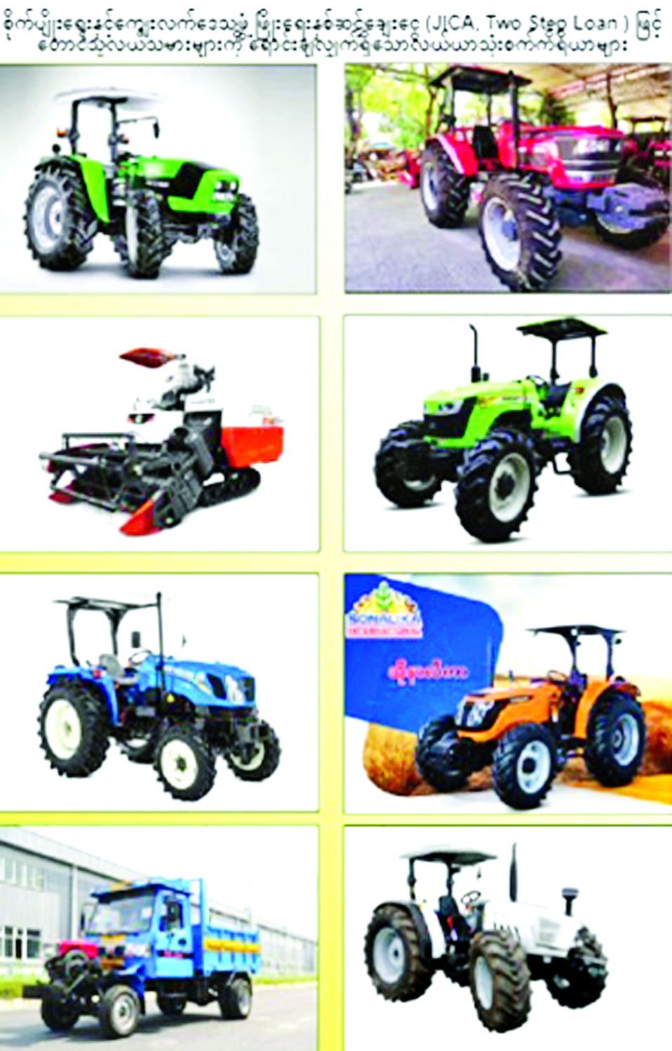 စီမံကိန်းစတင်သည့် ၂၁-၁-၂၀၁၇ ရက်နေ့မှ ၂၀-၉-၂၀၂၂ ရက်နေ့အထိ မြန်မာနိုင်ငံတစ်ဝန်းလုံးရှိ တောင်သူလယ်သမား များသို့ လယ်ယာကုန်ထုတ်လုပ်ငန်းအတွက် လိုအပ်သည့် လယ်ယာသုံးစက်ကိရိယာများကို JICA, Two Step Loan ချေးငွေ အဓိကဖြင့် ထုတ်ချေးထားမှုအခြေအနေမှာ အောက်ပါအတိုင်းဖြစ်ပါသည်-