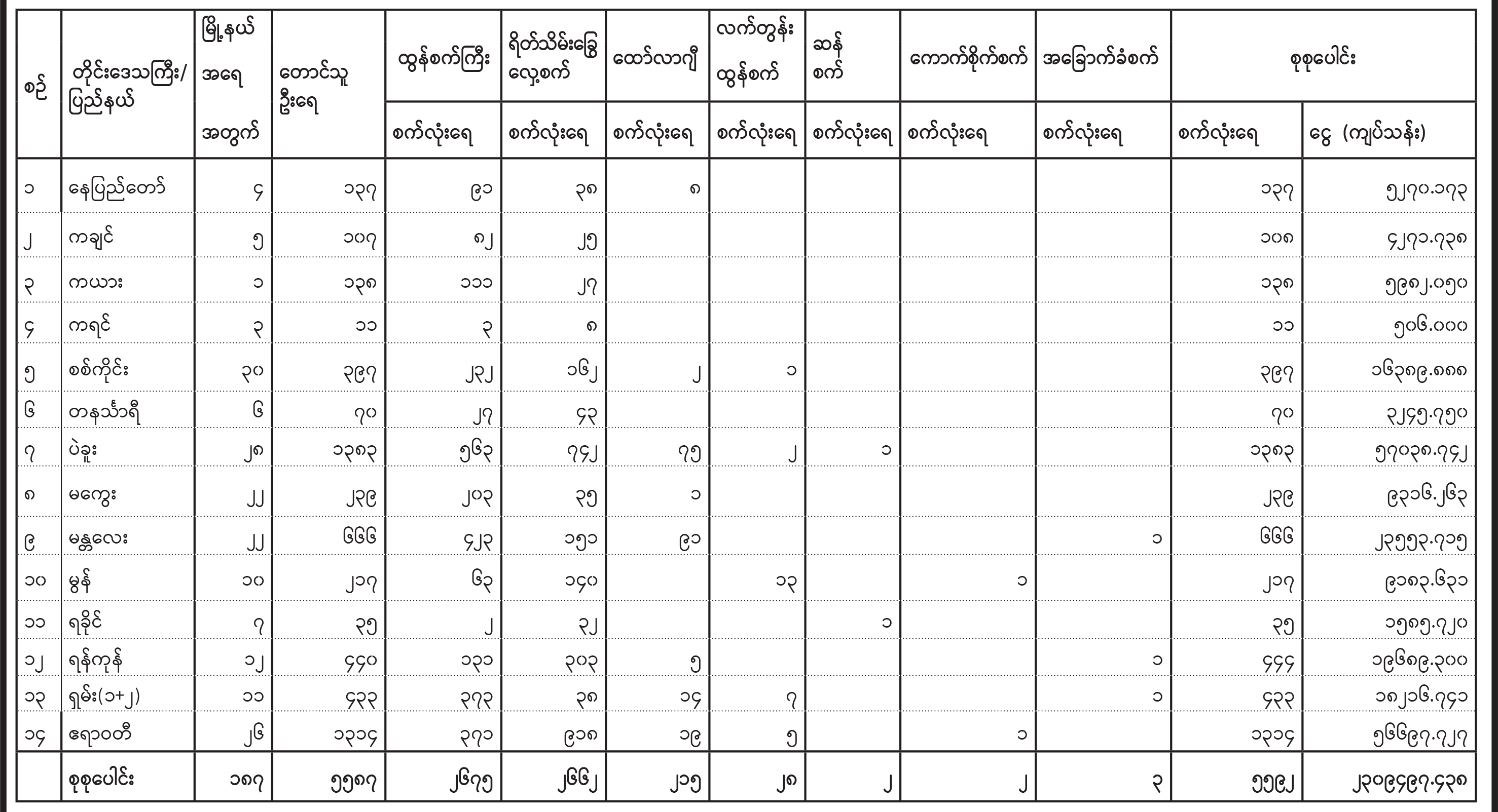 (က) နေပြည်တော်ကောင်စီနယ်မြေနှင့် ပြည်နယ်နှင့်တိုင်းဒေသကြီး ၁၄ ခု