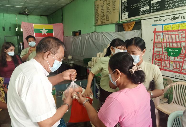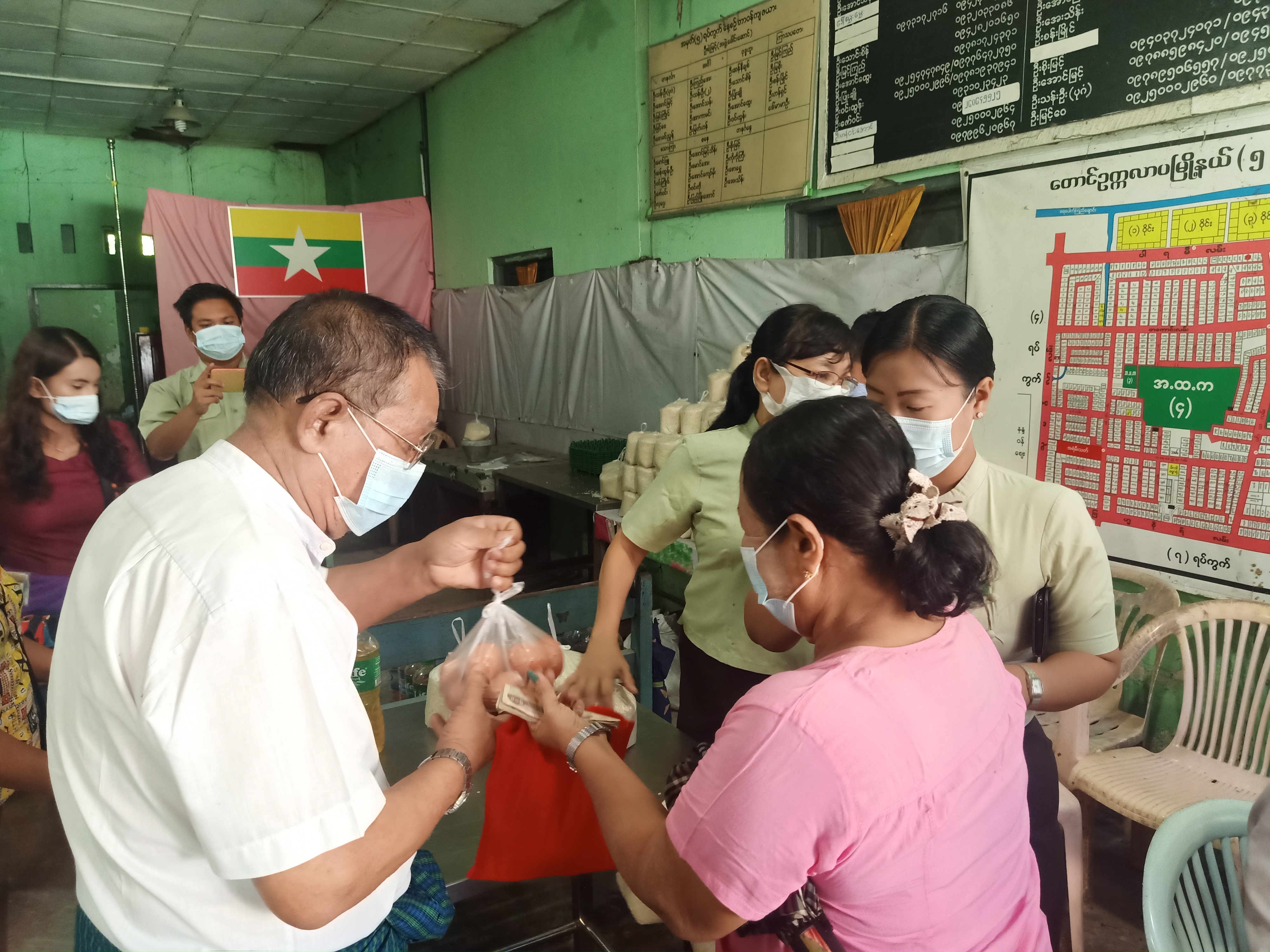 ထို့သို့ရောင်းချရာတွင် ဆန်တစ်ပြည်လျှင် ငွေကျပ် ၁၇၀၀၊ စားဆီတစ်ပိဿာလျှင် ငွေကျပ် ၄၀၀၀၊ ကြက်ဥ တစ်လုံးလျှင် ၁၇၅ ကျပ်ဖြင့် ရောင်းချပေးခြင်းဖြစ်ပြီး အဆိုပါရောင်းချမှုကို မြို့နယ်စီမံအုပ်ချုပ်ရေးအဖွဲ့ ဥက္ကဋ္ဌနှင့်အဖွဲ့ဝင်များ၊ မြို့နယ်ရဲတပ်ဖွဲ့၊ မြို့နယ်အထွေထွေ အုပ်ချုပ်ရေး ဦးစီးဌာနမှ ဝန်ထမ်းများ၊ မြို့နယ်စည်ပင်သာယာ ဦးစီးဌာန၊ လူမှုကူညီရေး အသင်းအဖွဲ့များ၊ အမှတ်(၅)ရပ်ကွက် အုပ်ချုပ်ရေးမှူးနှင့် တာဝန်ရှိသူများက ကြီးကြပ်ကွပ်ကဲ ရောင်းချပေးခဲ့ကြောင်း သိရသည်။