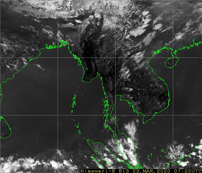 ဘင်္ဂလားပင်လယ်အော် အခြေအနေ။ ကပ္ပလီပင်လယ်ပြင်နှင့် ဘင်္ဂလားပင်လယ်အော်တို့တွင် တိမ်အနည်းငယ် ဖြစ်ထွန်းနေပါသည်။