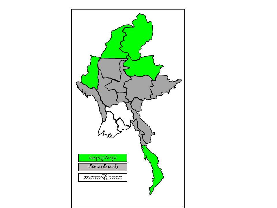 မနက်ဖြန်နံနက်အထိခန့်မှန်းချက်မှာ စစ်ကိုင်းတိုင်းဒေသကြီးအထက်ပိုင်း၊ တနင်္သာရီတိုင်းဒေသကြီး၊ ကချင်ပြည်နယ်၊ ရှမ်းပြည်နယ်(မြောက်ပိုင်း)နှင့် ချင်းပြည်နယ်တို့တွင် နေရာကွက်ကျား မိုးထစ်ချုန်းရွာမည်။ ရွာရန်ရာနှုန်း (၈၀)ဖြစ်ပါသည်။ ပဲခူးတိုင်း ဒေသကြီး၊ ရန်ကုန်တိုင်းဒေသကြီးနှင့် ဧရာဝတီတိုင်းဒေသကြီး တို့တွင် အများအားဖြင့် သာယာပြီး၊ ကျန်တိုင်းဒေသကြီးနှင့် ပြည်နယ်တို့တွင် တိမ်အသင့်အတင့် ဖြစ်ထွန်းမည်။