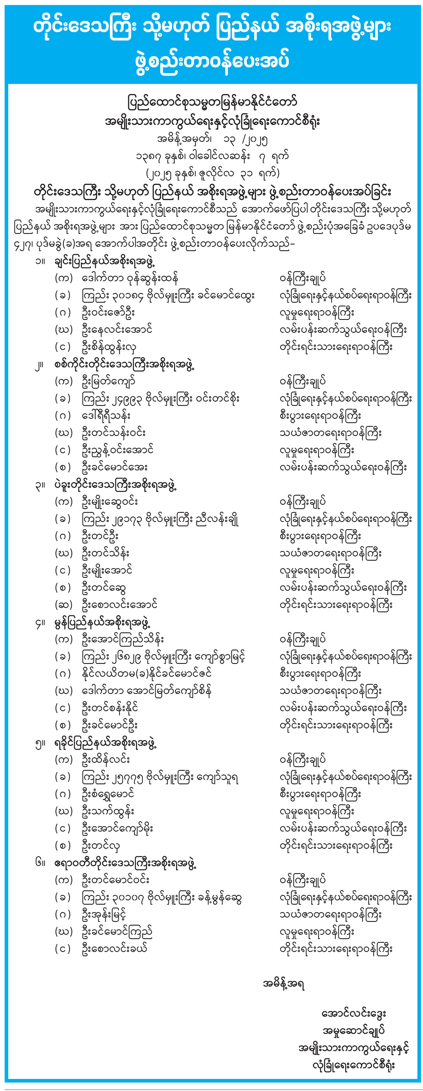 တိုင်းဒေသကြီး သို့မဟုတ် ပြည်နယ် အစိုးရအဖွဲ့များ ဖွဲ့စည်းတာဝန်ပေးအပ်