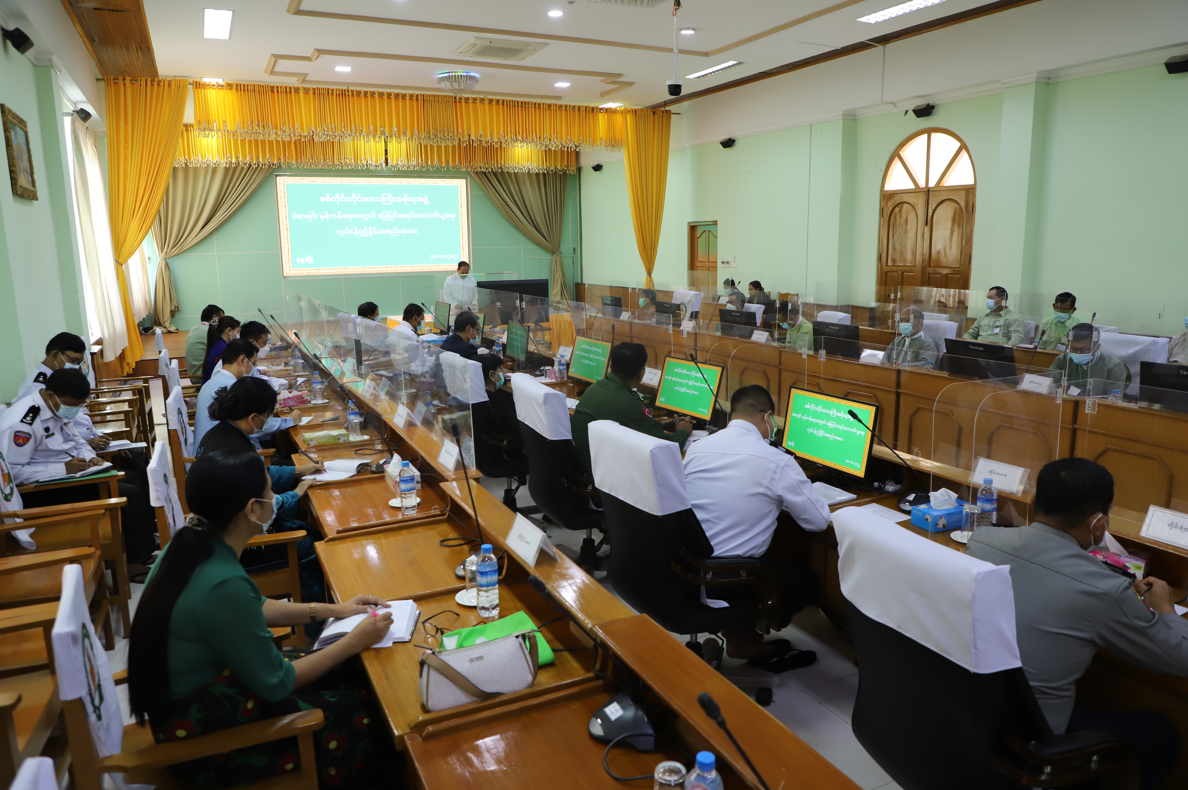 ယင်းနောက် တိုင်းဒေသကြီး လူမူရေးရာဝန်ကြီး၊ တိုင်းဒေသကြီး လူဝင်မှုကြီးကြပ်ရေးနှင့် ပြည်သူ့ အင်အားဦးစီးဌာန၊ တိုင်းဒေသကြီးဦးစီးမှူး ဦးအေးလိူင်နှင့် တိုင်းဒေသကြီးအစိုးရအဖွဲ့ အတွင်း ရေးမှူး ဦးခင်မောင်ဆန်းတို့က တိုင်းဒေသကြီးအတွင်းရှိ ခရိုင်/မြို့နယ်များတွင် မဲစာရင်းများ မှန်ကန်ရေးအတွက် မြေပြင်စာရင်းကောက်ယူနိုင်ရေး လုပ်ငန်းများ ဆောင်ရွက်ထားရှိမှုများနှင့် ဆက်လက်ဆောင်ရွက်သွားမည့် အစီအမံများကို ရှင်းလင်းတင်ပြကြသည်။