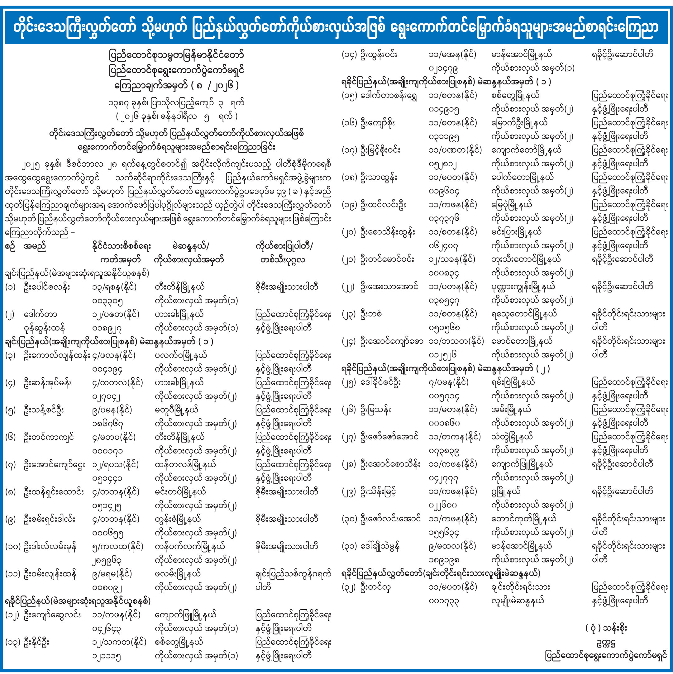 တိုင်းဒေသကြီးလွှတ်တော် သို့မဟုတ် ပြည်နယ်လွှတ်တော်ကိုယ်စားလှယ်အဖြစ် ရွေးကောက်တင်မြေှာက်ခံရသူများအမည်စာရင်းကြေညာ