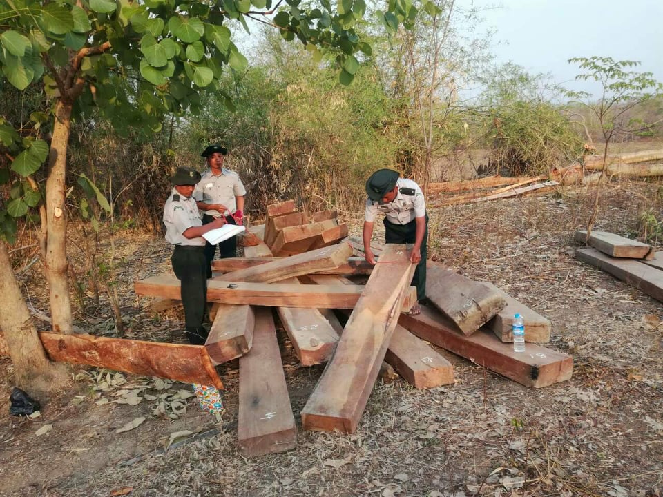 ဆက်လက်၍ တမူးခရိုင် တမူးမြို့နယ် ခမ်းပတ်မြို့၏ အနောက်ဘက်(၄) ဖာလုံခန့်အကွာမှ ကျွန်း၊ ကညင်ခွဲသား (၆ ဒသမ ၈၁၉၂)တန်၊ အင်ဂျင်(၁)လုံး နှင့်ဆက်စပ်ပစ္စည်း (၅)မျိုး၊ ရွှေဘိုခရိုင်၊ ကန့်ဘလူမြို့နယ်၊ မလယ်ကျေးရွာအတွင်းရှိ ဟီးနိုး(၆)ဘီး (အစိမ်းရောင်) မော်တော်ယာဉ်ပေါ်မှ အင်ကြင်းခွဲသား (၃ ဒသမ ၃၈၀၄) တန်၊ မုံရွာ/ ယင်းမာပင်ခရိုင် ပုလဲမြို့နယ် လယ်ဓမ္မကျေးရွာ အတွင်းမှ ပိတောက် ဒုခွဲသား (၁၂ ဒသမ ၁၈၅၈)တန်နှင့် ရှမ်းပြည်နယ်(တောင်ပိုင်း) လွိုင်လင်ခရိုင် ကွန်ဟိန်းမြို့နယ် အမှတ်(၂)ရပ်ကွက်အနီး၌ SURF မော်ယာဉ်ပေါ်မှ တမလန်းသစ်၊ ဓါးရွေ (ဝ ဒသမ ၈၃၅၄)တန်တို့အားလည်းကောင်း ပိုင်ရှင်မဲ့ဖမ်းဆီးရမိခဲ့ပြီး ပြစ်မှုကျူးလွန်သူများ နှင့် ဆက်စပ်သော သူများအားစုံစမ်းရှာဖွေဖော်ထုတ်၍ ဥပဒေနှင့်အညီ ထိရောက်စွာ အရေးယူနိုင်ရေး စီစဉ်ဆောင်ရွက် လျက်ရှိကြောင်း သစ်တောဉီးစီးဌာနမှ သိရသည်။