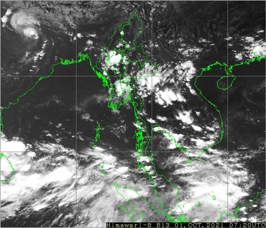 လွန်ခဲ့သော(၂၄)နာရီအတွင်းက နေပြည်တော်၊ စစ်ကိုင်းတိုင်းဒေသကြီးအောက်ပိုင်းနှင့် ဧရာဝတီတိုင်းဒေသကြီးတို့တွင် တိမ်အသင့်အတင့် ဖြစ်ထွန်းခဲ့ပါသည်။ ရှမ်းပြည်နယ်(တောင်ပိုင်းနှင့် အရှေ့ပိုင်း)တို့တွင် နေရာစိပ်စိပ်၊ ပဲခူးတိုင်းဒေသကြီး၊ တနင်္သာရီတိုင်းဒေသကြီး၊ ကချင်ပြည်နယ်၊ ကယားပြည်နယ်နှင့် ကရင်ပြည်နယ်တို့တွင် နေရာကျဲကျဲနှင့် ကျန်တိုင်းဒေသကြီးနှင့် ပြည်နယ်တို့တွင် နေရာကွက်ကျား မိုးထစ်ချုန်းရွာခဲ့ပါသည်။ မှတ်သားဖွယ်ရာ မိုးရေချိန်များမှာ ပူတာအိုမြို့တွင် (၁.၉၃)လက်မ၊ ဘားအံမြို့တွင် (၁.၄၅)လက်မ၊ ပိုင်ကျုံမြို့တွင် (၁.၂၅)လက်မ၊ သထုံမြို့တွင် (၁.၂၂)လက်မ၊ မိုးကုတ်မြို့တွင် (၀.၈၇)လက်မ၊ ရှမ်းရွာသစ်မြို့တွင် (၀.၆၇)လက်မနှင့် ကော့သောင်းမြို့တွင် (၀.၄၀)လက်မတို့ ဖြစ်ကြပါသည်။