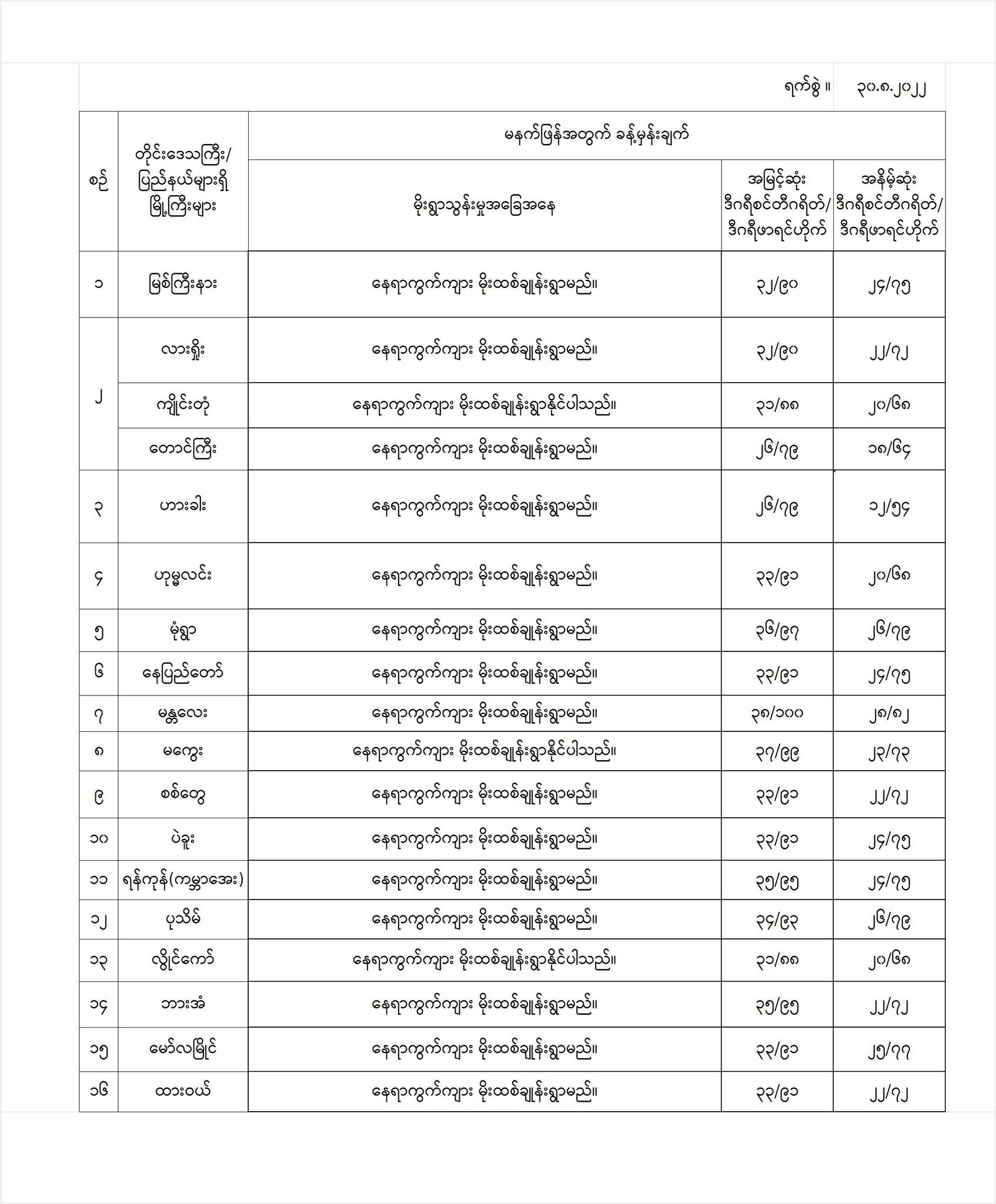 တိုင်းဒေသကြီးနှင့် ပြည်နယ်များရှိ မြို့ကြီးများ၏ အမြင့်ဆုံးအပူချိန်၊ အနိမ့်ဆုံးအပူချိန်နှင့် မိုးလေဝသခန့်မှန်းချက်
