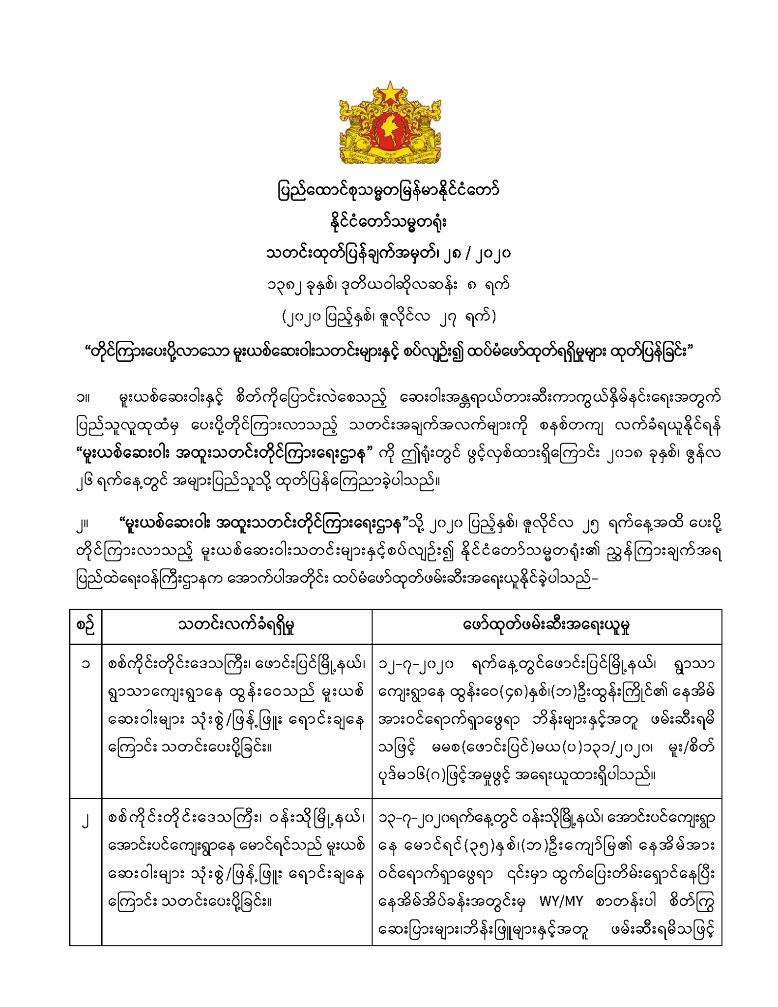 တိုင်ကြားပေးပို့လာသော မူးယစ်ဆေးဝါးသတင်းများနှင့် စပ်လျဉ်း၍ ထပ်မံဖော်ထုတ်ရရှိမှုများ ထုတ်ပြန်