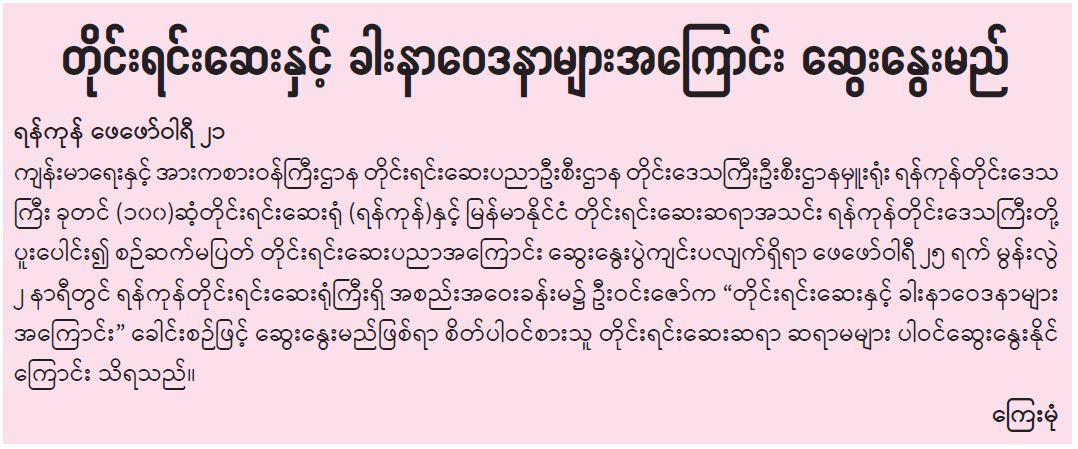 တိုင်းရင်းဆေးနှင့် ခါးနာဝေဒနာများအကြောင်း ဆွေးနွေးမည်