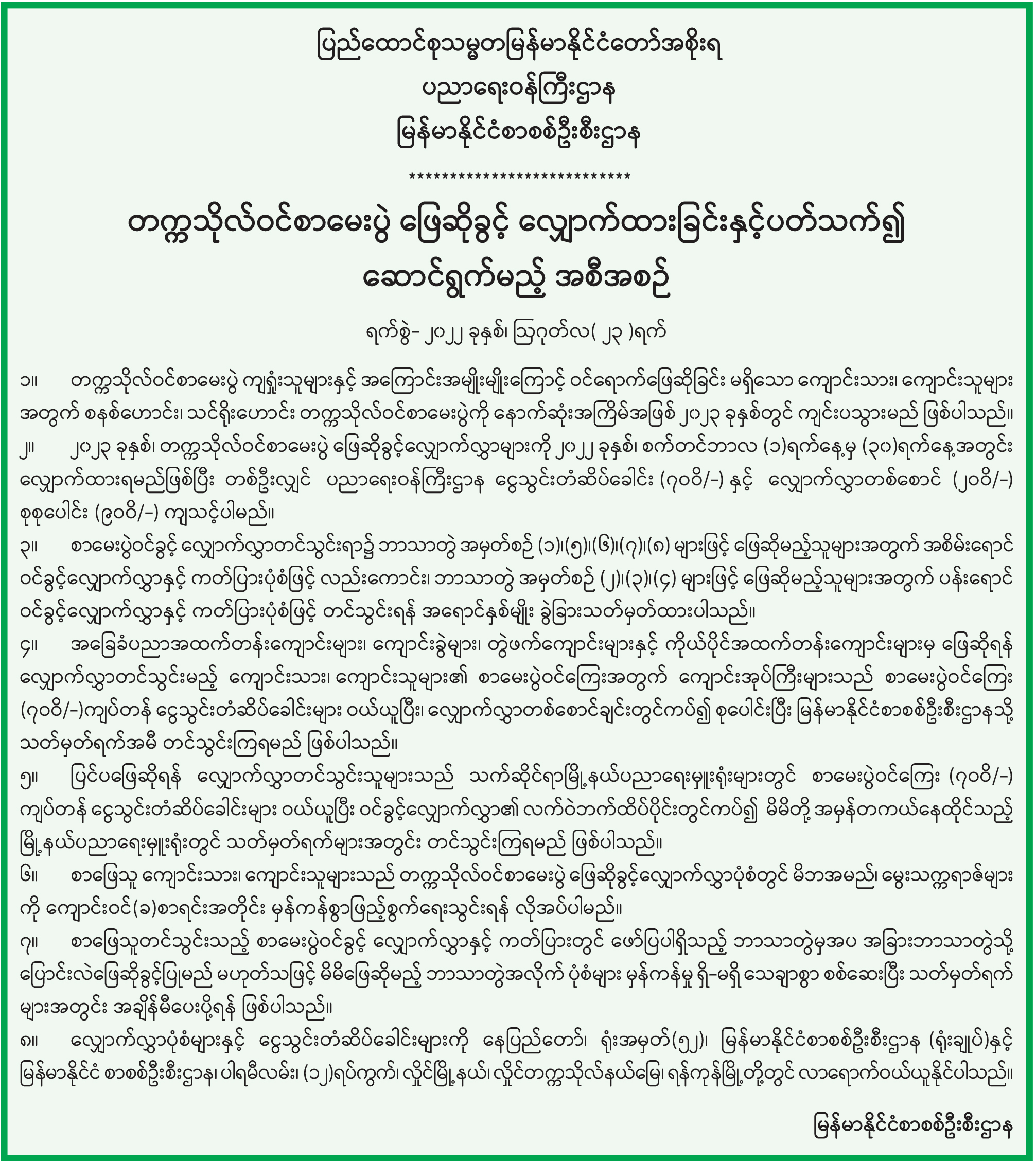 တက္ကသိုလ်ဝင်စာမေးပွဲ ဖြေဆိုခွင့် လျှောက်ထားခြင်းနှင့်ပတ်သက်၍ ဆောင်ရွက်မည့် အစီအစဉ်