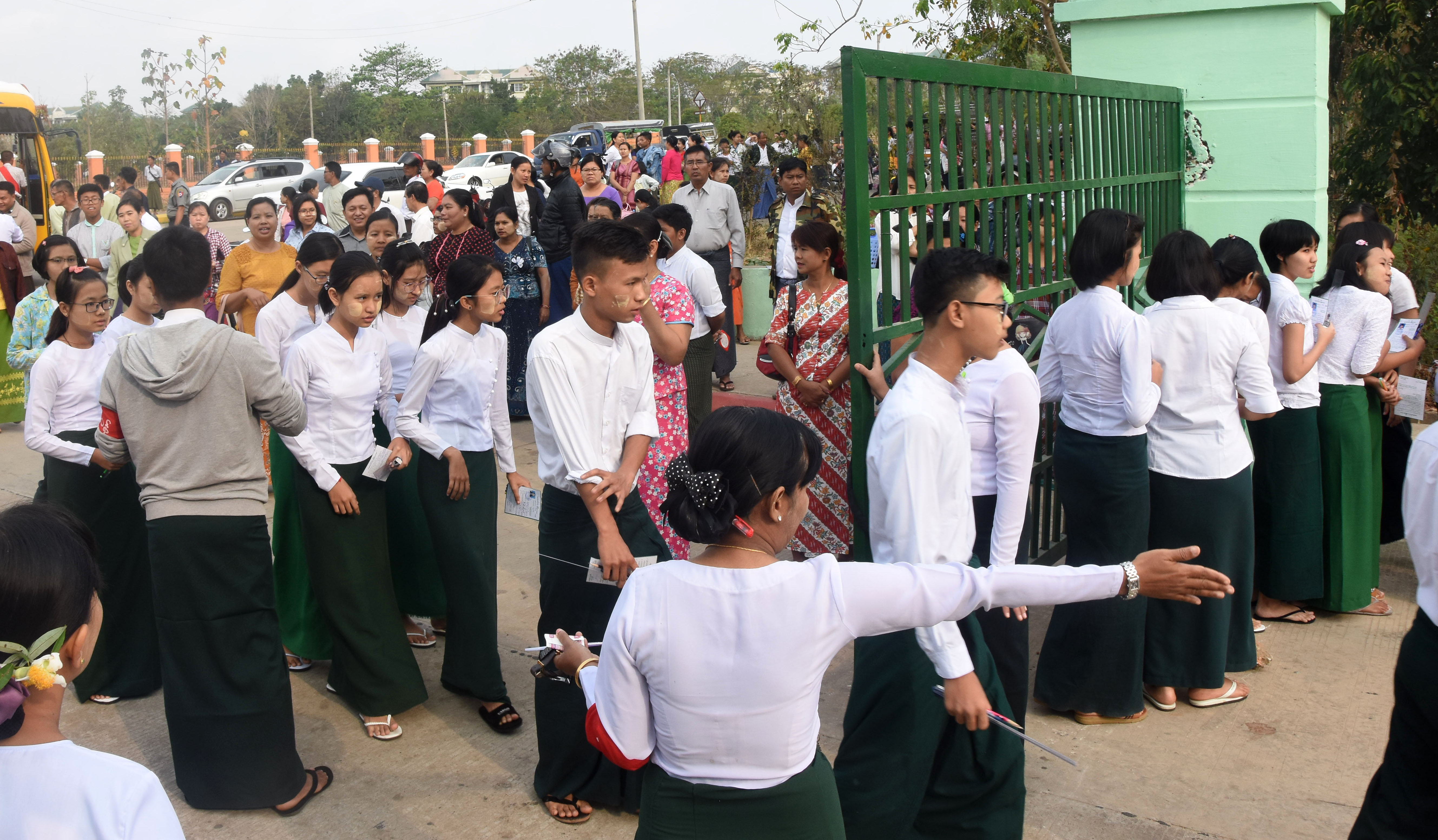 ၂၀၁၈-၂၀၁၉ ပညာသင်နှစ် တက္ကသိုလ်ဝင်စာမေးပွဲ ပထမနေ့ မြန်မာစာဘာသာရပ်ကို ယနေ့ စတင်ဖြေဆိုကြသည်။
