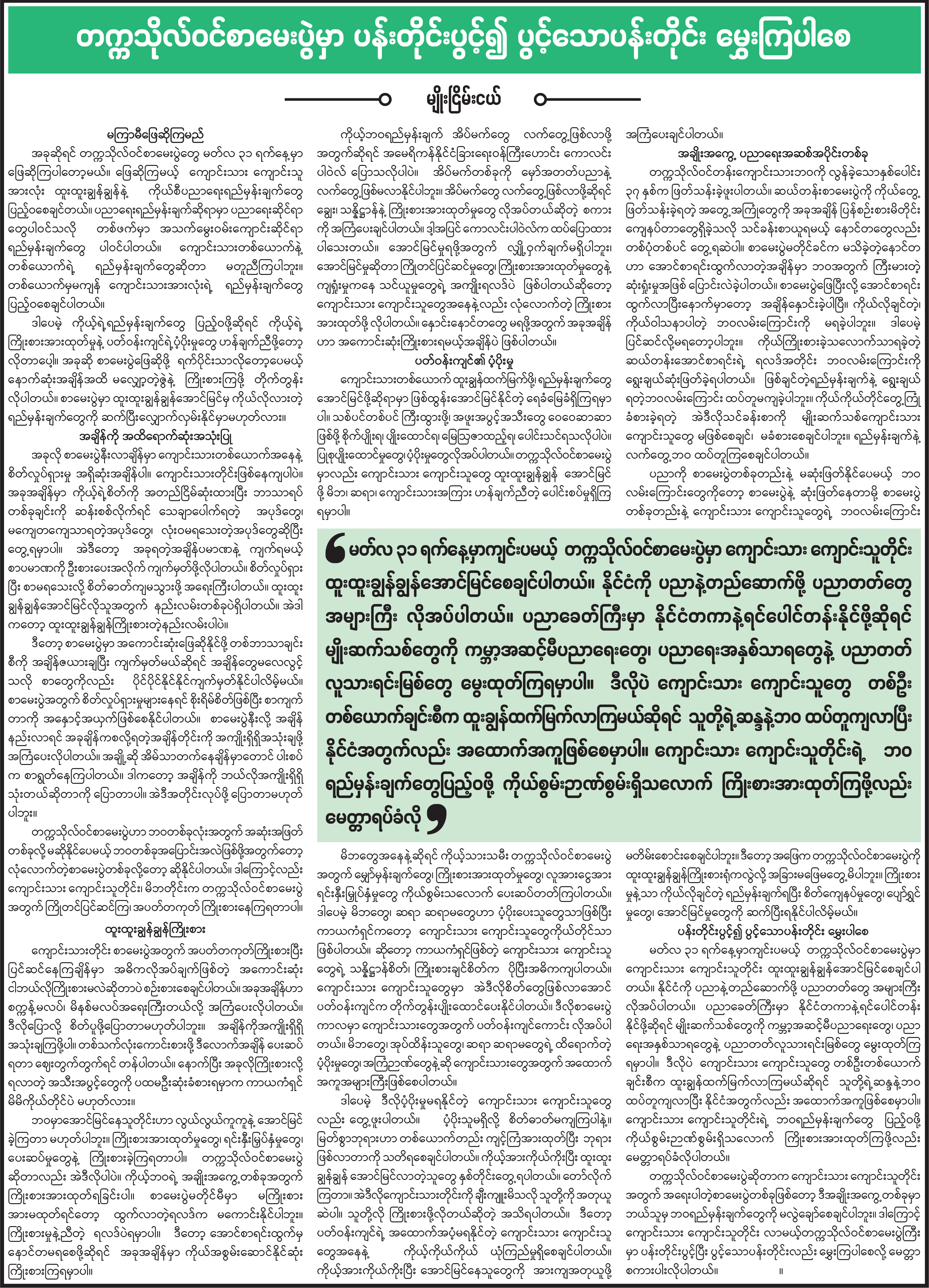 သတင်းဆောင်းပါးများ