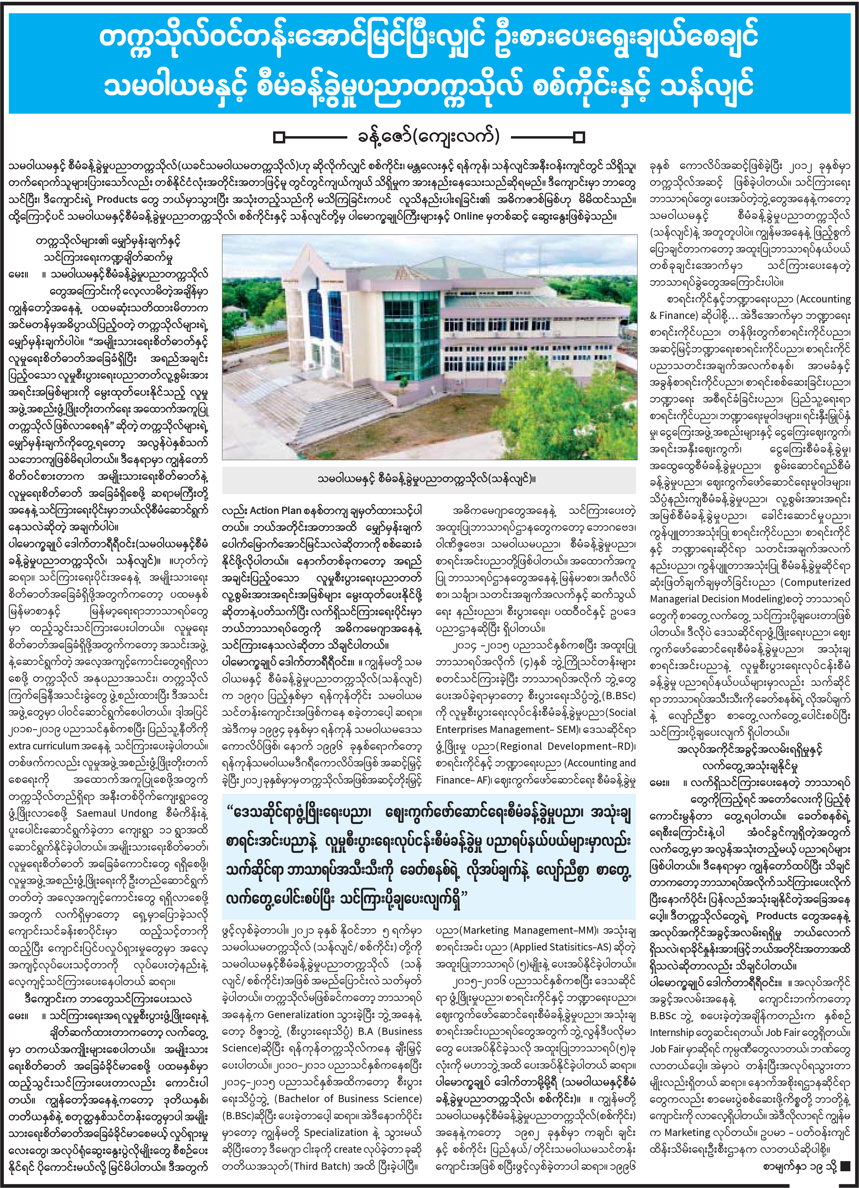 တက္ကသိုလ်ဝင်တန်းအောင်မြင်ပြီးလျှင် ဦးစားပေးရွေးချယ်စေချင် သမဝါယမနှင့် စီမံခန့်ခွဲမှုပညာတက္ကသိုလ် စစ်ကိုင်းနှင့် သန်လျင်