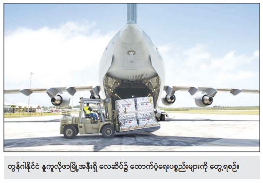 ဂျပန်နိုင်ငံမှ သောက်သုံးရေများ တင်ဆောင်လာသည့် လေယာဉ်သည်လည်း တွန်ဂါနိုင်ငံသို့ ရောက်ရှိနေပြီဖြစ်သည်။ ။