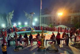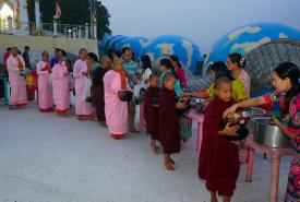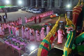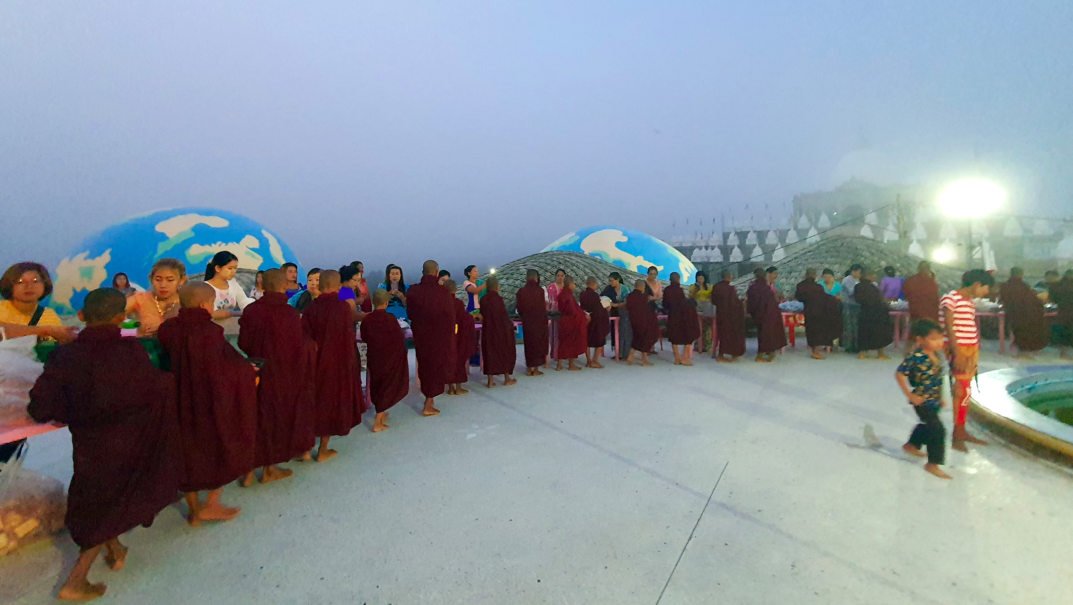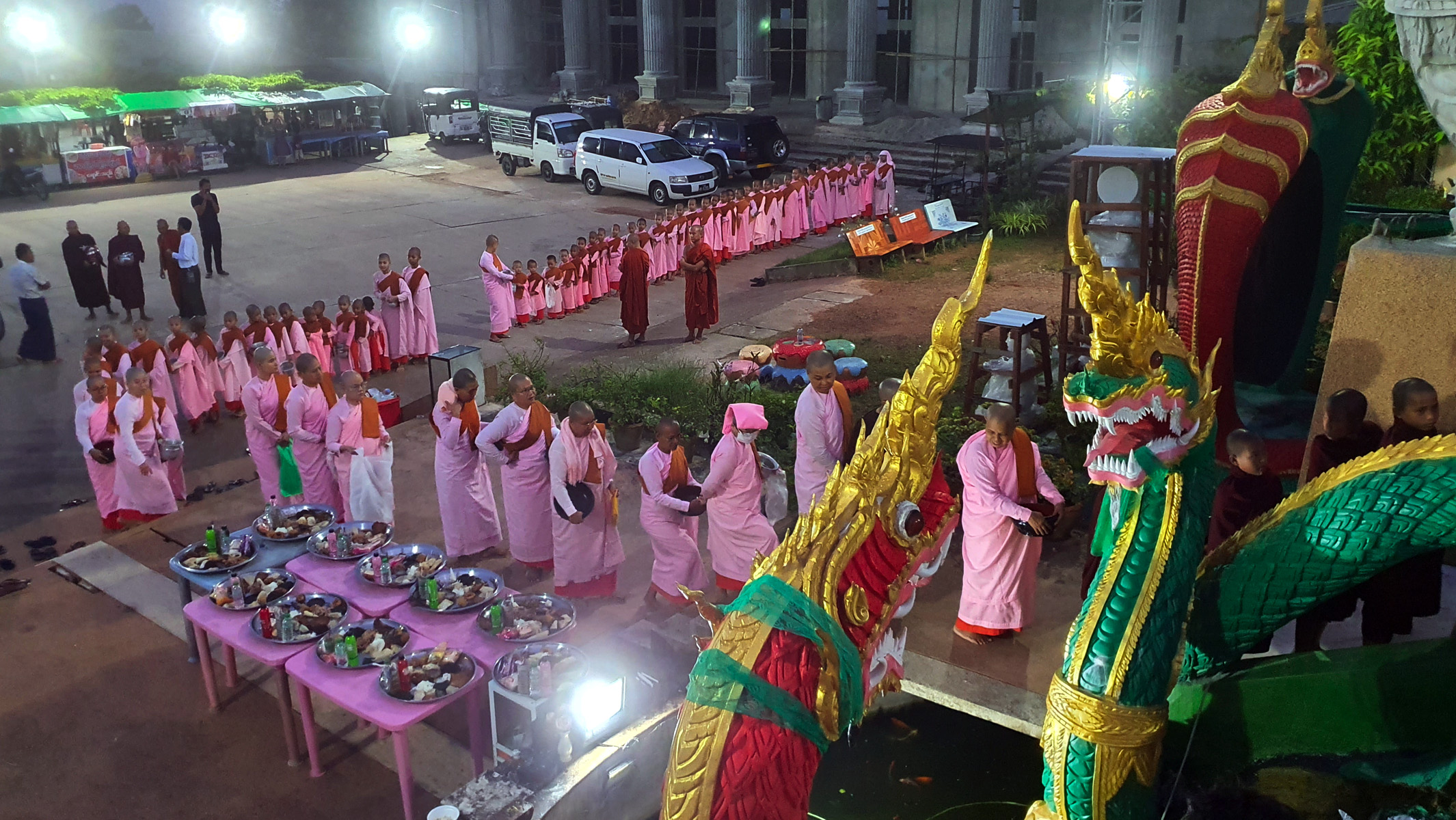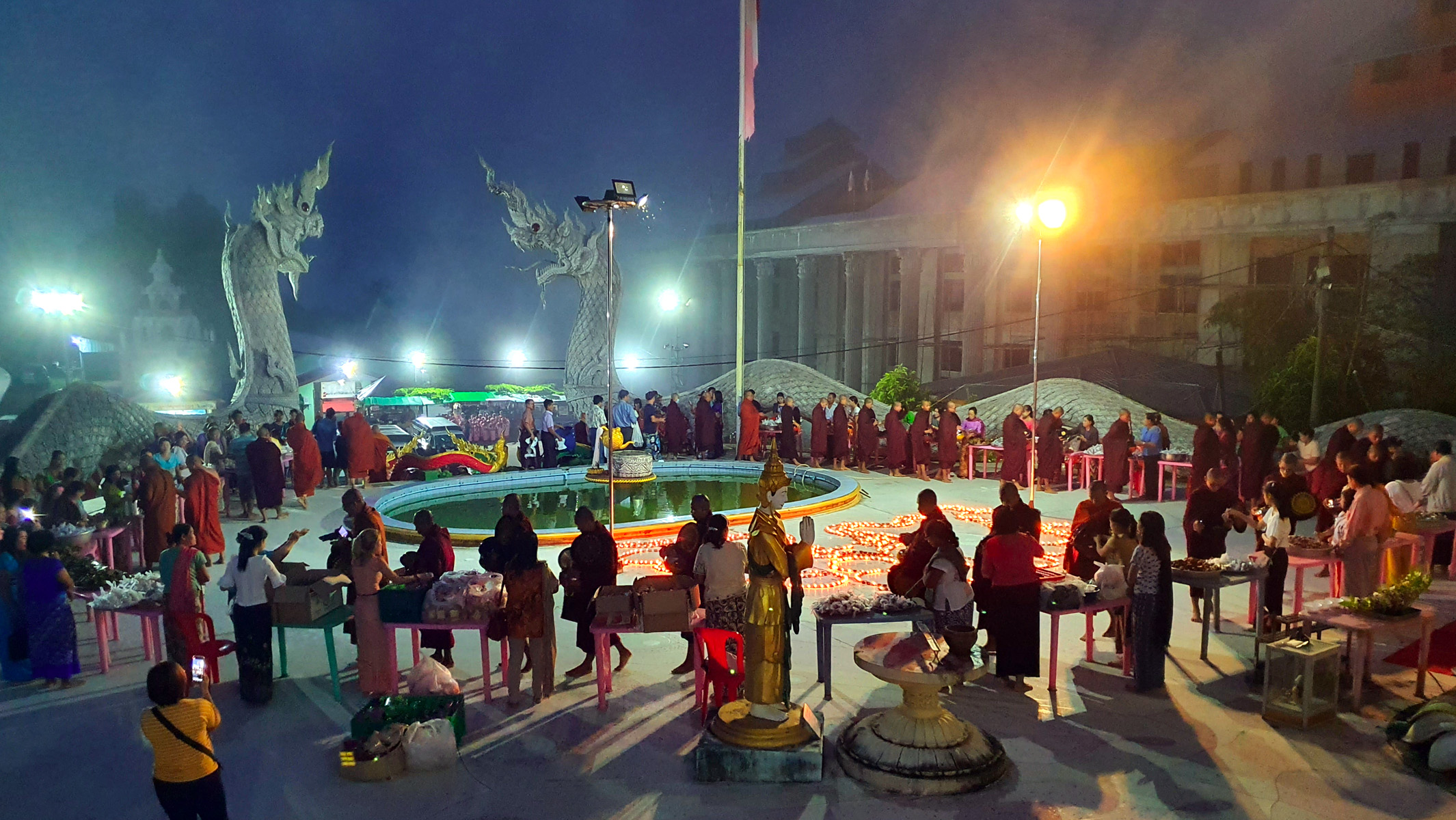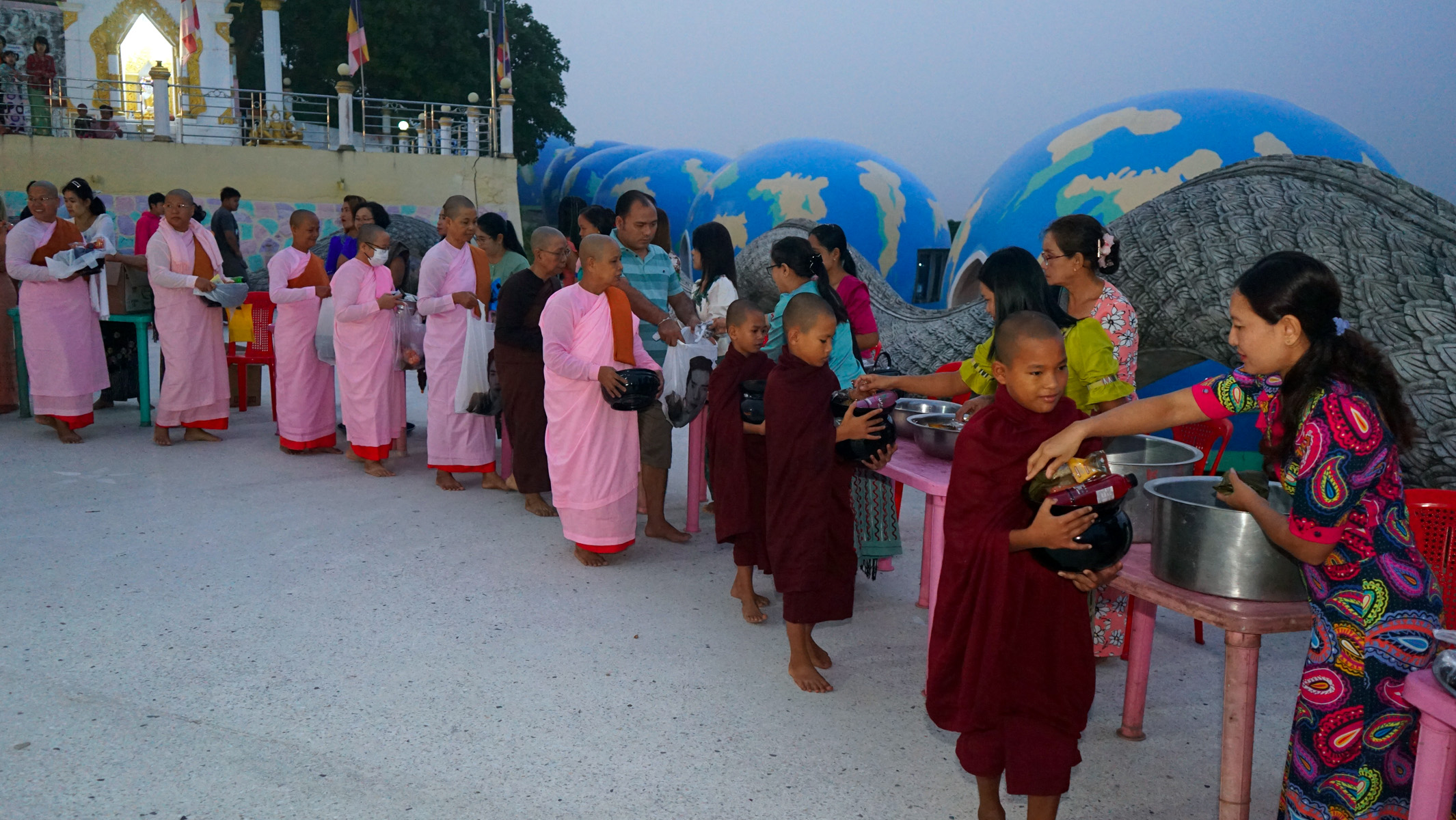 တနင်္သာရီတိုင်းဒေသကြီး မြိတ်မြို့ရှိ တစ်ကမ္ဘာလုံး အေးမြချမ်းသာဘုရားကြီး ဘုရားရင်ပြင်တော်တွင် တနင်္သာရီရိုးရာ ခေါသရပ်နေ့ ယနေ့ နံနက်ပိုင်းက သံဃာတော်နှင့်သီလရှင်များအား ပင့်ဖိတ်၍ တနင်္သာရီ ရိုးရာ ခေါသရပ်ထိုးမုန့်နှင့် မြိတ်ဒေသမုန့်ဆွမ်း (၃၅)မျိုးကို ကမ္ဘာလုံးကျောင်းတိုက် သာသနာပြုဆရာတော် ဦးဆောင်၍ အလှူရှင်များမှ မုန့်အရုဏ်ဆွမ်း လောင်းလှူခဲ့ကြသည်။