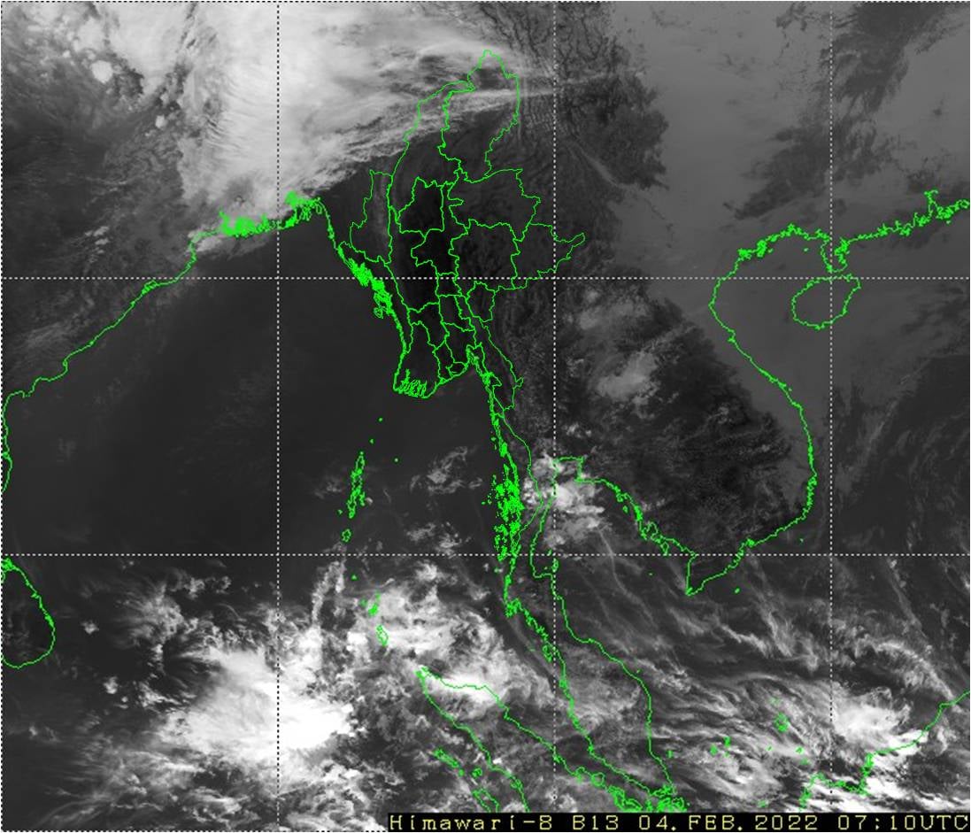 လွန်ခဲ့သော(၂၄)နာရီအတွင်းက စစ်ကိုင်းတိုင်းဒေသကြီးအထက်ပိုင်းနှင့် ကချင်ပြည်နယ်တို့တွင် နေရာကွက်ကျား မိုးအနည်းငယ် ရွာခဲ့ပြီး တနင်္သာရီတိုင်းဒေသကြီး၊ ချင်းပြည်နယ်နှင့် မွန်ပြည်နယ် တို့တွင် တိမ်အသင့်အတင့် ဖြစ်ထွန်းခဲ့ကာ ကျန်တိုင်းဒေသကြီးနှင့် ပြည်နယ်တို့တွင် အများအားဖြင့် သာယာခဲ့သည်။