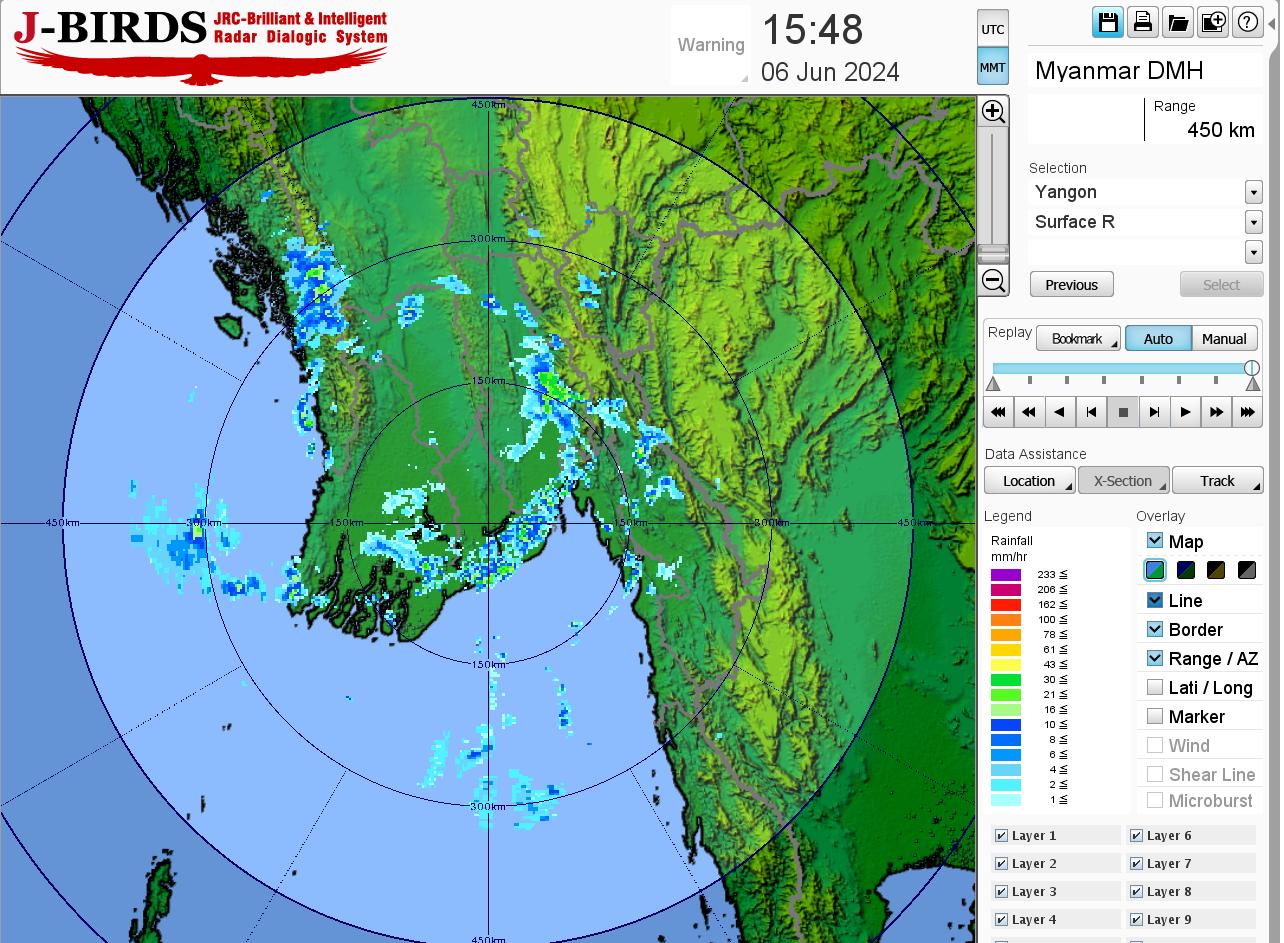 မိုးတိမ်တောင်ဖြစ်ပေါ်မှုအခြေအနေ။ စစ်ကိုင်းတိုင်းဒေသကြီးအောက်ပိုင်း၊ မကွေးတိုင်းဒေသကြီး၊ ပဲခူးတိုင်းဒေသကြီး၊ ရန်ကုန်တိုင်းဒေသကြီး၊ ဧရာဝတီတိုင်းဒေသကြီး၊ ကချင်ပြည်နယ်၊ ရှမ်းပြည်နယ်နှင့် ရခိုင်ပြည်နယ်တို့တွင် မိုးတိမ်တောင်များ ဖြစ်ထွန်းလျက်ရှိပါသည်။