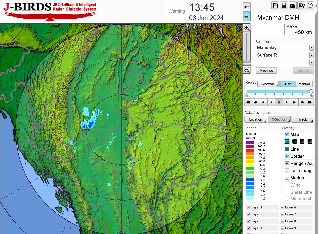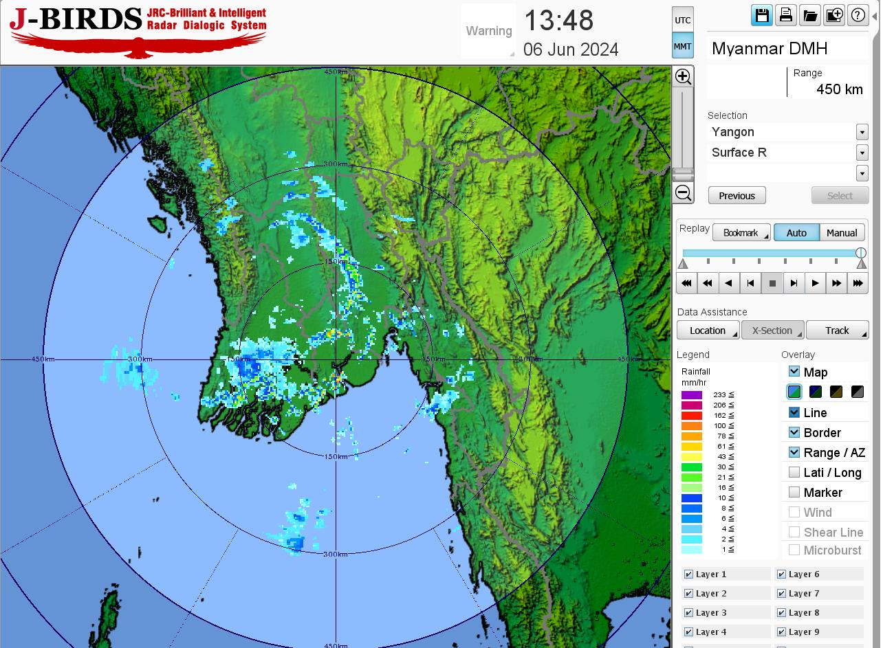 မိုးတိမ်တောင်ဖြစ်ပေါ်မှုအခြေအနေ။ ဧရာဝတီတိုင်းဒေသကြီး၊ ရှမ်းပြည်နယ်(တောင်ပိုင်း)နှင့် ရခိုင်ပြည်နယ်တို့တွင် မိုးတိမ်တောင်များ ဖြစ်ထွန်းလျက်ရှိပါသည်။