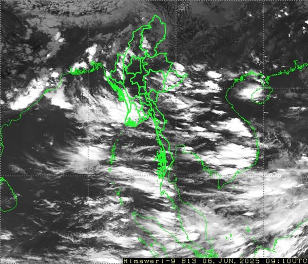 မိုးတိမ်တောင်ဖြစ်ပေါ်မှုအခြေအနေ။ ရန်ကုန်တိုင်းဒေသကြီး၊ ပဲခူးတိုင်းဒေသကြီး၊ စစ်ကိုင်းတိုင်းဒေသကြီးအထက်ပိုင်း၊ ဧရာဝတီတိုင်းဒေသကြီး၊ တနင်္သာရီတိုင်းဒေသကြီး၊ ကချင်ပြည်နယ်၊ ကရင်ပြည်နယ်၊ ချင်းပြည်နယ်၊ မွန်ပြည်နယ်၊ ရခိုင်ပြည်နယ်နှင့် ရှမ်းပြည်နယ်(အရှေ့ပိုင်း)တို့တွင် မိုးတိမ်တောင်များ ဖြစ်ထွန်းလျက်ရှိပြီး၊ အဆိုပါ မိုးတိမ်တောင်များ ရွေ့လျားရာနေရာတစ်လျှောက်တွင် မိုးရွာသွန်းခြင်းနှင့်အတူ လေပြင်းတိုက်ခတ်ခြင်း၊ မိုးထစ်ချုန်းခြင်း၊ မိုးကြိုးပစ်ခြင်း၊ လျှပ်စီးလက်ခြင်းနှင့် မိုးသီးကြွေခြင်းစသည့် မိုးလေဝသဖြစ်စဉ်များ ဖြစ်ပေါ်နိုင်ပါသဖြင့် ကြိုတင်သတိပြုနိုင်ပါရန် အကြံပြုအပ်ပါသည်။