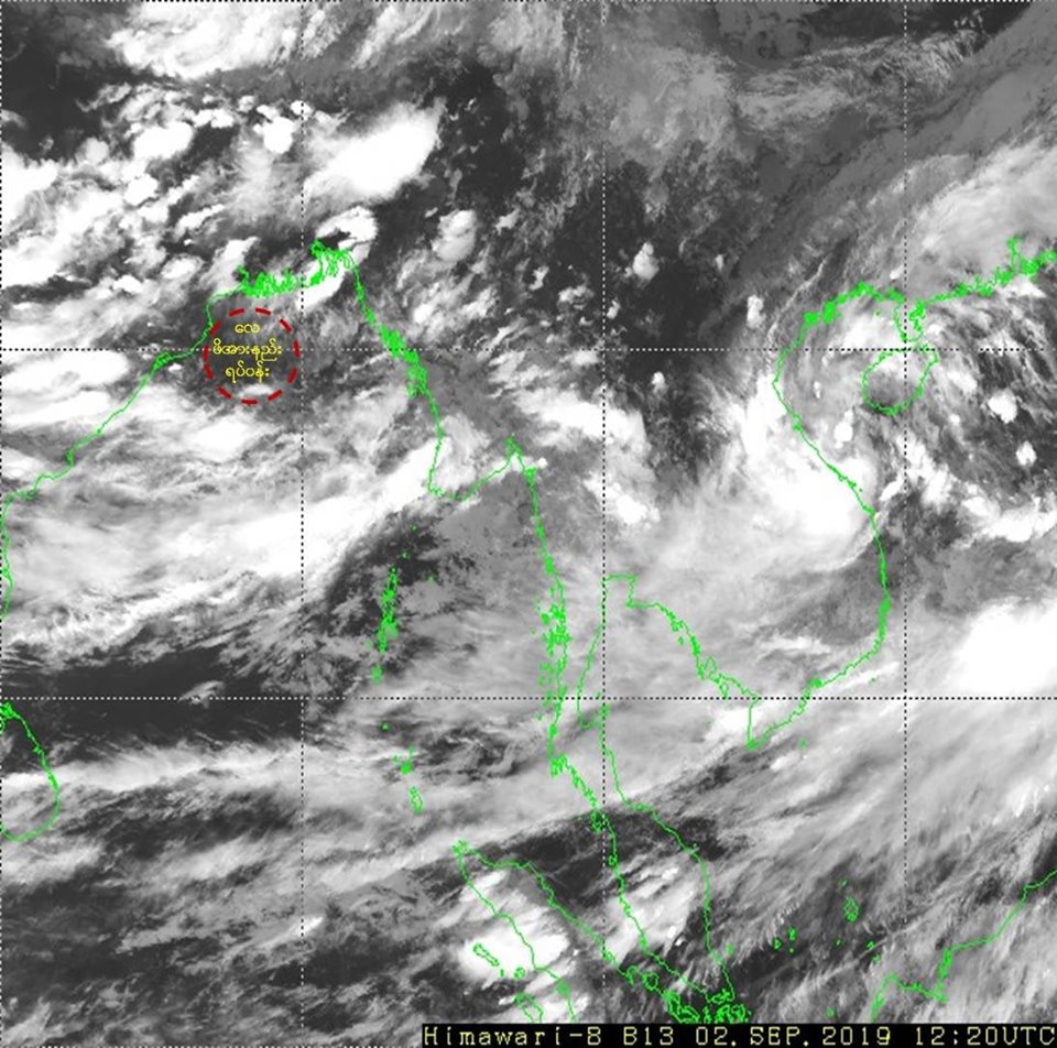 ၂၀၁၉ ခုနှစ်၊ စက်တင်ဘာလ (၂)ရက်နေ့ ည(၇:ဝ၀)နာရီအချိန် မိုးဇလမှ ထုတ်ပြန်ချက်အရယနေ့မြန်မာစံတော်ချိန် (၁၈:၃၀)နာရီအချိန် တိုင်းထွာချက်များအရ ဘင်္ဂလား ပင်လယ်အော် အနောက်မြောက်ပိုင်းတွင် ဖြစ်ပေါ်နေသော လေဖိအားနည်းရပ်ဝန်း(Low Pressure Area) သည် ဆက်လက်တည်ရှိနေပါသည်။ ကပ္ပလီပင်လယ်ပြင်နှင့် ဘင်္ဂလားပင်လယ်အော်တို့တွင် မုတ်သုံလေ အားကောင်း ရာမှ အားအလွန်ကောင်းနေပါသည်။