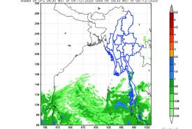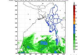 ယမန်နေ့နံနက် ၀၉:၃၀ နာရီအချိန်မှ ယနေ့နံနက် ၀၉:၃၀ နာရီအချိန်အထိ မိုးလေဝသတိုင်းထွာချက်အကျဉ်းချုပ်။ လွန်ခဲ့သော ၂၄ နာရီအတွင်းက နေပြည်တော်၊ ရန်ကုန်တိုင်းဒေသကြီး၊ ပဲခူးတိုင်းဒေသကြီး၊ ဧရာဝတီတိုင်းဒေသကြီး၊ ကယားပြည်နယ်၊ ကရင်ပြည်နယ်၊ ရခိုင်ပြည်နယ်နှင့် ရှမ်းပြည်နယ် (တောင်ပိုင်း)တို့တွင် တိမ်အသင့်အတင့် ဖြစ်ထွန်းခဲ့ပြီး ကျန်တိုင်းဒေသကြီးနှင့် ပြည်နယ်တို့တွင် အများအားဖြင့် သာယာခဲ့ပါသည်။ ညအပူချိန်များမှာ ပဲခူးတိုင်းဒေသကြီးနှင့် ကယားပြည်နယ်တို့တွင် ဒီဇင်ဘာလ၏ ပျမ်းမျှအပူချိန်တို့အောက် ၃ ဒီဂရီဆဲလ်စီးယပ်နှင့် နေပြည်တော်၊ ရန်ကုန်တိုင်းဒေသကြီး၊ စစ်ကိုင်းတိုင်းဒေသကြီးအထက်ပိုင်း၊ ကရင်ပြည်နယ်နှင့် ရှမ်းပြည်နယ်(အရှေ့ပိုင်း)တို့တွင် ဒီဇင်ဘာလ၏ ပျမ်းမျှအပူချိန်တို့အောက် ၂ ဒီဂရီဆဲလ်စီးယပ် လျော့နည်းခဲ့ပြီး ရှမ်းပြည်နယ်(မြောက်ပိုင်း)တွင် ဒီဇင်ဘာလ၏ ပျမ်းမျှအပူချိန်ထက် ၂ ဒီဂရီဆဲလ်စီးယပ်ပိုခဲ့ကာ ကျန်တိုင်းဒေသကြီးနှင့် ပြည်နယ်တို့တွင် ဒီဇင်ဘာလ၏ ပျမ်းမျှအပူချိန်ခန့်သာ ရှိခဲ့ပါသည်။ ထူးခြားသည့် ညအပူချိန်များမှာ ဟားခါးမြို့တွင် ၁.၈ ဒီဂရီဆဲလ်စီးယပ်၊ နမ့်စန်မြို့(ရှမ်းပြည်နယ် တောင်ပိုင်း)တွင် ၅.၃ ဒီဂရီဆဲလ်စီးယပ်၊ လွိုင်လင်မြို့တွင် ၆.၁ ဒီဂရီဆဲလ်စီးယပ်၊ ဟဲဟိုးမြို့တွင် ၆.၅ ဒီဂရီဆဲလ်စီးယပ်၊ တီးတိန်မြို့တွင် ၆.၇ ဒီဂရီ ဆဲလ်စီးယပ်၊ ပင်လောင်းမြို့တွင် ၇.၆ ဒီဂရီဆဲလ်စီးယပ်၊ လွိုင်ကော်မြို့တွင် ၉.၀ ဒီဂရီဆဲလ်စီးယပ်၊ တောင်ကြီးမြို့တွင် ၁၀.၄ ဒီဂရီဆဲလ်စီးယပ်၊ ကျိုင်းတုံမြို့တွင် ၁၀.၈ ဒီဂရီဆဲလ်စီးယပ်နှင့် မိုင်းယန်းမြို့တွင် ၁၁.၀ ဒီဂရီဆဲလ်စီးယပ်တို့ ဖြစ်ကြပါသည်။