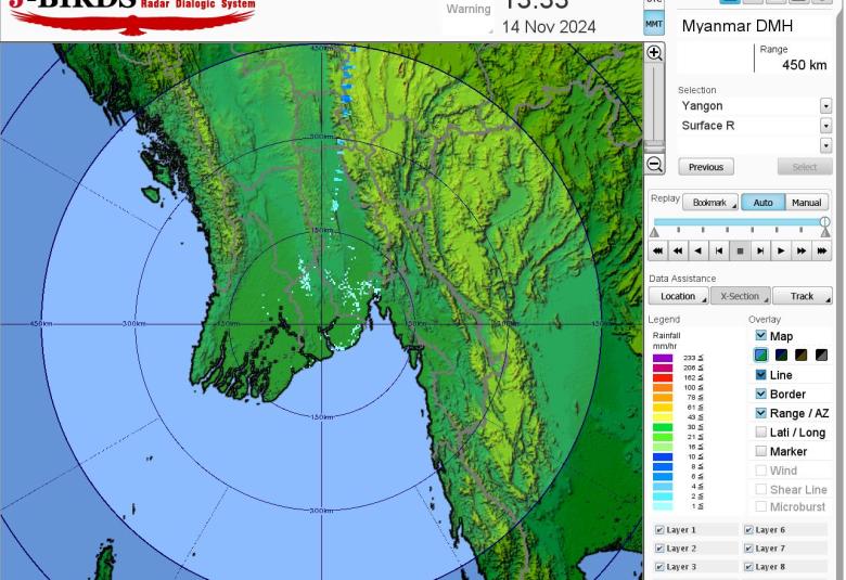 မိုးတိမ်တောင်ဖြစ်ပေါ်မှုအခြေအနေ။ တနင်္သာရီတိုင်းဒေသကြီးတွင် မိုးတိမ်တောင်များ ဖြစ်ထွန်းလျက်ရှိပြီး၊ အဆိုပါ မိုးတိမ်တောင်များ ရွေ့လျားရာနေရာတစ်လျှောက်တွင် မိုးရွာသွန်းခြင်းနှင့်အတူ လေပြင်းတိုက်ခတ်ခြင်း၊ မိုးထစ်ချုန်းခြင်း၊ မိုးကြိုးပစ်ခြင်း၊ လျှပ်စီးလက်ခြင်းနှင့် မိုးသီးကြွေခြင်းစသည့် မိုးလေဝသဖြစ်စဉ်များ ဖြစ်ပေါ်နိုင်ပါသဖြင့် ကြိုတင်သတိပြုနိုင်ပါရန် အကြံပြုအပ်ပါသည်။