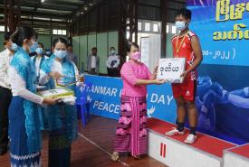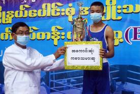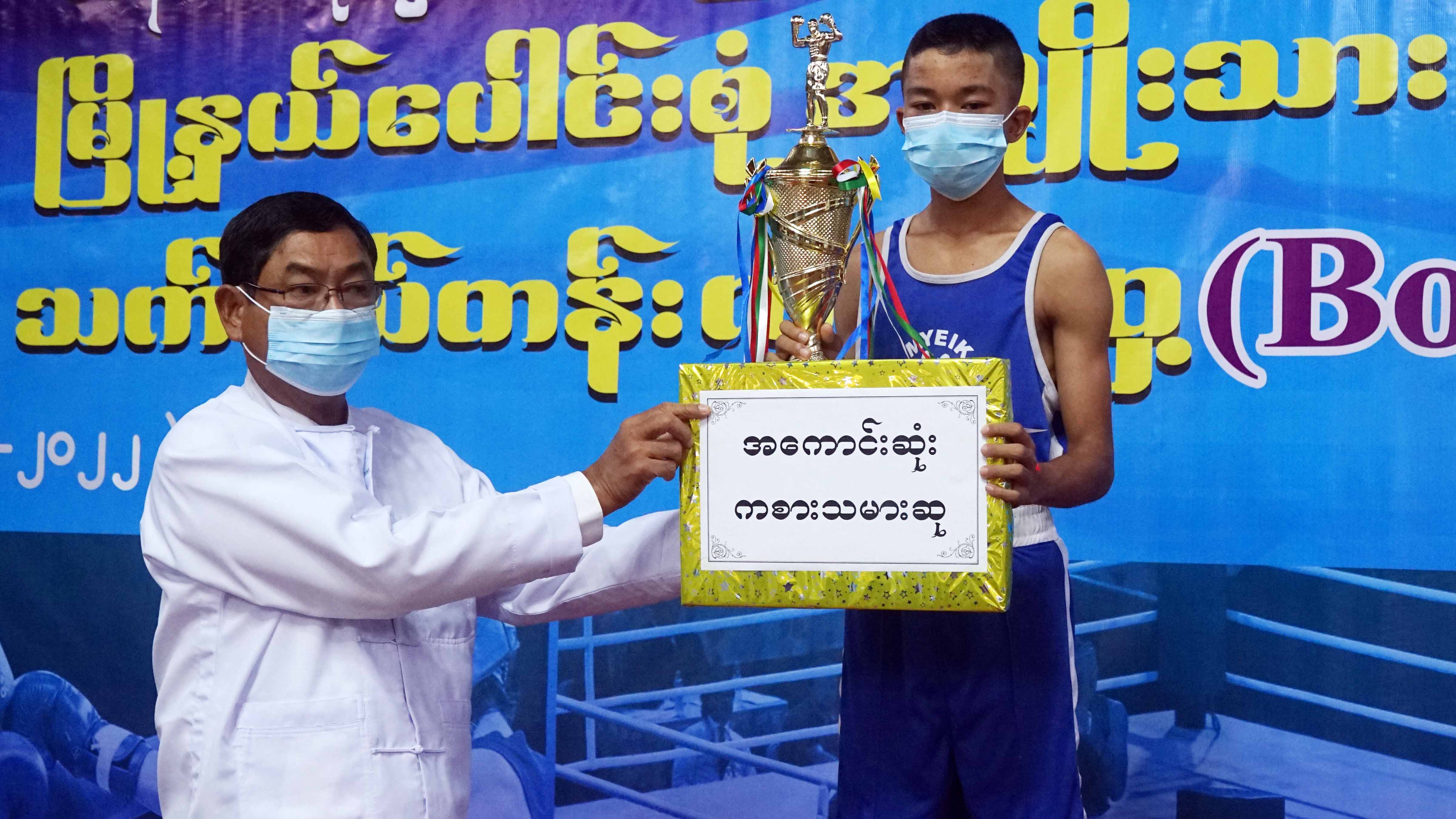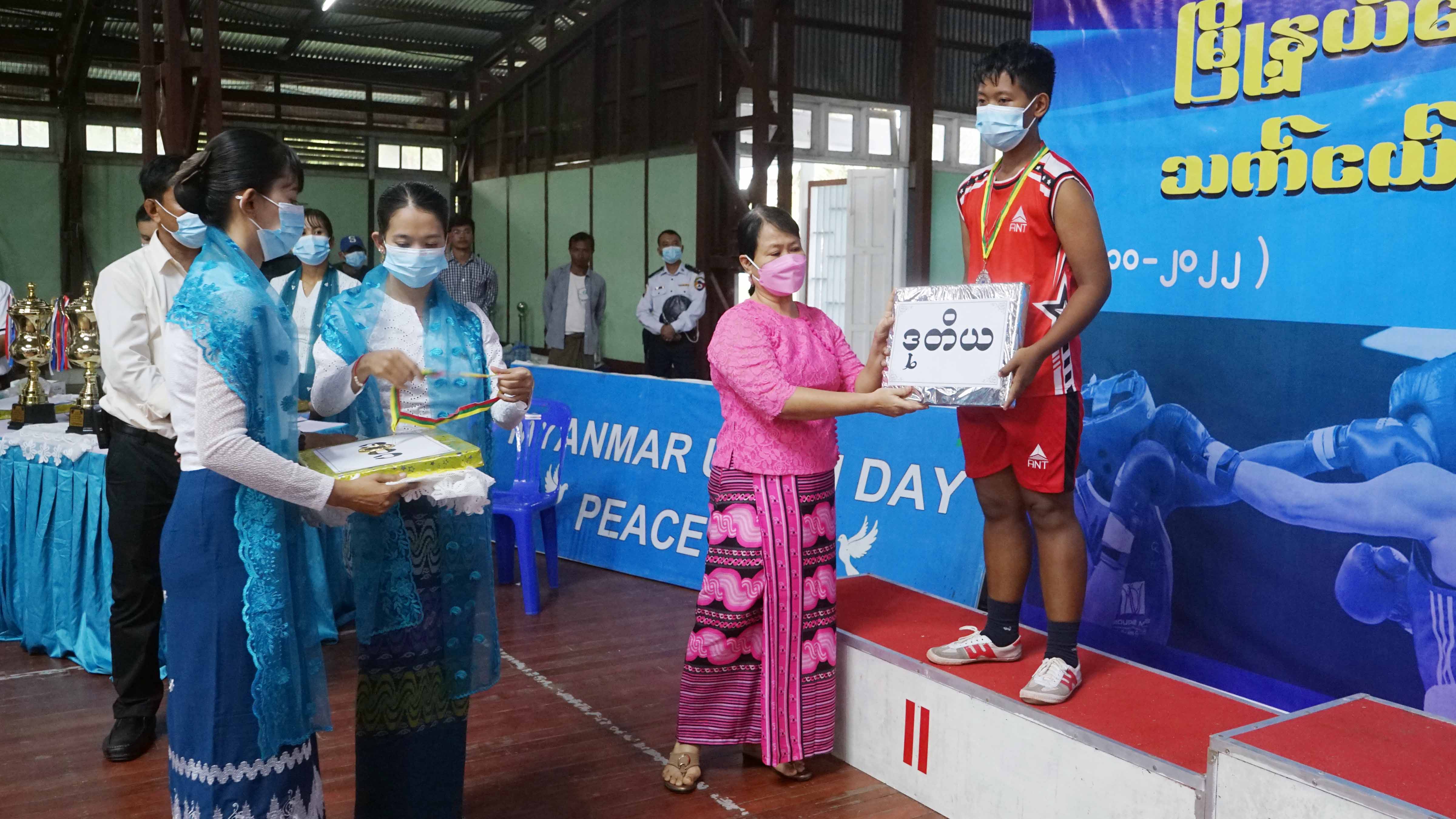 လက်ဝှေ့ပြိုင်ပွဲတွင် အမျိုးသမီး (၄၅၊ ၄၈၊ ၅၇) ကီလိုတန်းနှင့် အမျိုးသား (၄၀၊ ၄၉၊ ၅၂) ကီလိုတန်းပြိုင်ပွဲ ယှဉ်ပြိုင်နေမှုများကို တိုင်းဒေသကြီးဝန်ကြီးချုပ် ၊ ဌာနဆိုင်ရာများ၊ အားကစား သမားများ၊ ဝါသနာရှင်များနှင့် တာဝန်ရှိသူများက ကြည်ရှု့အားပေးကြပြီး ဆုချီးမြှင့်ခြင်း အခမ်း အနားကို ကျင်းပရာ တိုင်းဒေသကြီး လွှတ်တော်ရုံး ဒုတိယညွှန်ကြားရေးမှူးချုပ် က အမျိုးသား/ အမျိုးသမီးတစ်ဦးချင်း အကောင်းဆုံး ဆုရရှိသူများကို လည်းကောင်း၊ တိုင်းဒေသကြီးဥပဒေချုပ် ဦးအုန်းသန်း နှင့် တိုင်းဒေသကြီးလူမှုရေးရာဝန်ကြီး ဦးယဉ်ထွေး တို့က အမျိုးသား (၄၀၊ ၄၉၊  ၅၂) ကီလိုတန်းပြိုင်ပွဲတွင် (ပထမ၊ ဒုတိယ၊ တတိယ) ဆုရရှိသူများကိုလည်းကောင်း၊ တိုင်းဒေသကြီး သယံဇာတရေးရာဝန်ကြီး ဦးခင်မောင်မြင့်၊ တိုင်းဒေသကြီး စီးပွားရေးရာဝန်ကြီး ဦးမောင်ကြီးနှင့် တိုင်းဒေသကြီးတရားလွှတ်တော် တရားသူကြီးချုပ် ဒေါ်ပိုက်ပိုက်အေး တို့က အမျိုးသမီး (၄၅၊ ၄၈၊ ၅၇) ကီလိုတန်းပြိုင်ပွဲတွင် (ပထမ၊ ဒုတိယ၊ တတိယ) ဆုရရှိသူများ ကိုလည်းကောင်း ဆုများ ပေးအပ် ချီးမြှင့်ကြသည်။