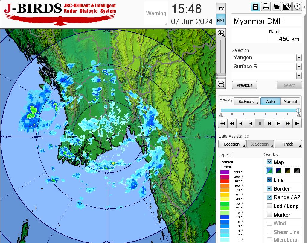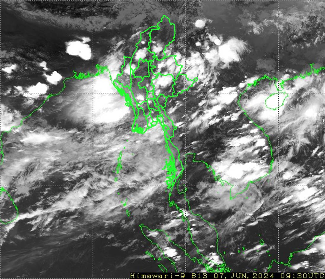 မနက်ဖြန်နံနက်အထိခန့်မှန်းချက်။ စစ်ကိုင်းတိုင်းဒေသကြီးအောက်ပိုင်း၊ မကွေးတိုင်းဒေသကြီးနှင့် ချင်းပြည်နယ်တို့တွင် နေရာကျဲကျဲ၊ စစ်ကိုင်းတိုင်းဒေသကြီးအထက်ပိုင်း၊ မန္တလေးတိုင်းဒေသကြီးနှင့် ကယားပြည်နယ်တို့တွင် နေရာစိပ်စိပ်နှင့် ကျန်တိုင်းဒေသကြီးနှင့် ပြည်နယ်တို့တွင် နေရာအနှံ့အပြား မိုးထစ်ချုန်းရွာပြီး၊ ဧရာဝတီတိုင်းဒေသကြီး၊ တနင်္သာရီတိုင်းဒေသကြီး၊ ရခိုင်ပြည်နယ်၊ ကရင်ပြည်နယ်နှင့် မွန်ပြည်နယ်တို့တွင် နေရာကွက်၍ မိုးကြီးနိုင်ပါသည်။ ရွာရန်ရာနှုန်းပြည့် ဖြစ်ပါသည်။