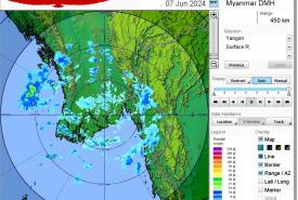 ရန်ကုန်မြို့နှင့် အနီးတစ်ဝိုက်အတွက် မနက်ဖြန်နံနက်အထိခန့်မှန်းချက်။ မိုးတစ်ကြိမ်၊ နှစ်ကြိမ်ထစ်ချုန်းရွာမည်။ ရွာရန်ရာနှုန်းပြည့် ဖြစ်ပါသည်။