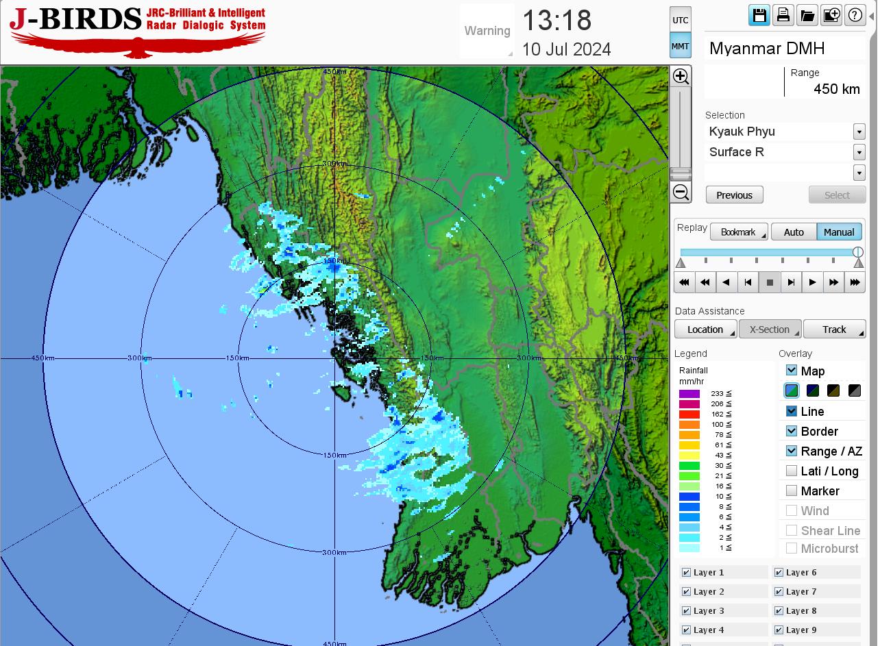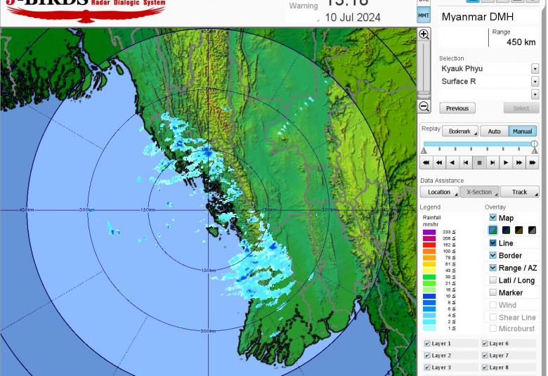 မိုးတိမ်တောင်ဖြစ်ပေါ်မှုအခြေအနေ။ စစ်ကိုင်းတိုင်းဒေသကြီးအထက်ပိုင်း၊ ဧရာဝတီတိုင်းဒေသကြီး၊ တနင်္သာရီတိုင်းဒေသကြီး၊ ကချင်ပြည်နယ်၊ ရှမ်းပြည်နယ်(မြောက်ပိုင်းနှင့် အရှေ့ပိုင်း)၊ ကရင်ပြည်နယ်နှင့် မွန်ပြည်နယ်တို့တွင် မိုးတိမ်တောင်များ ဖြစ်ထွန်းလျက်ရှိပါသည်။