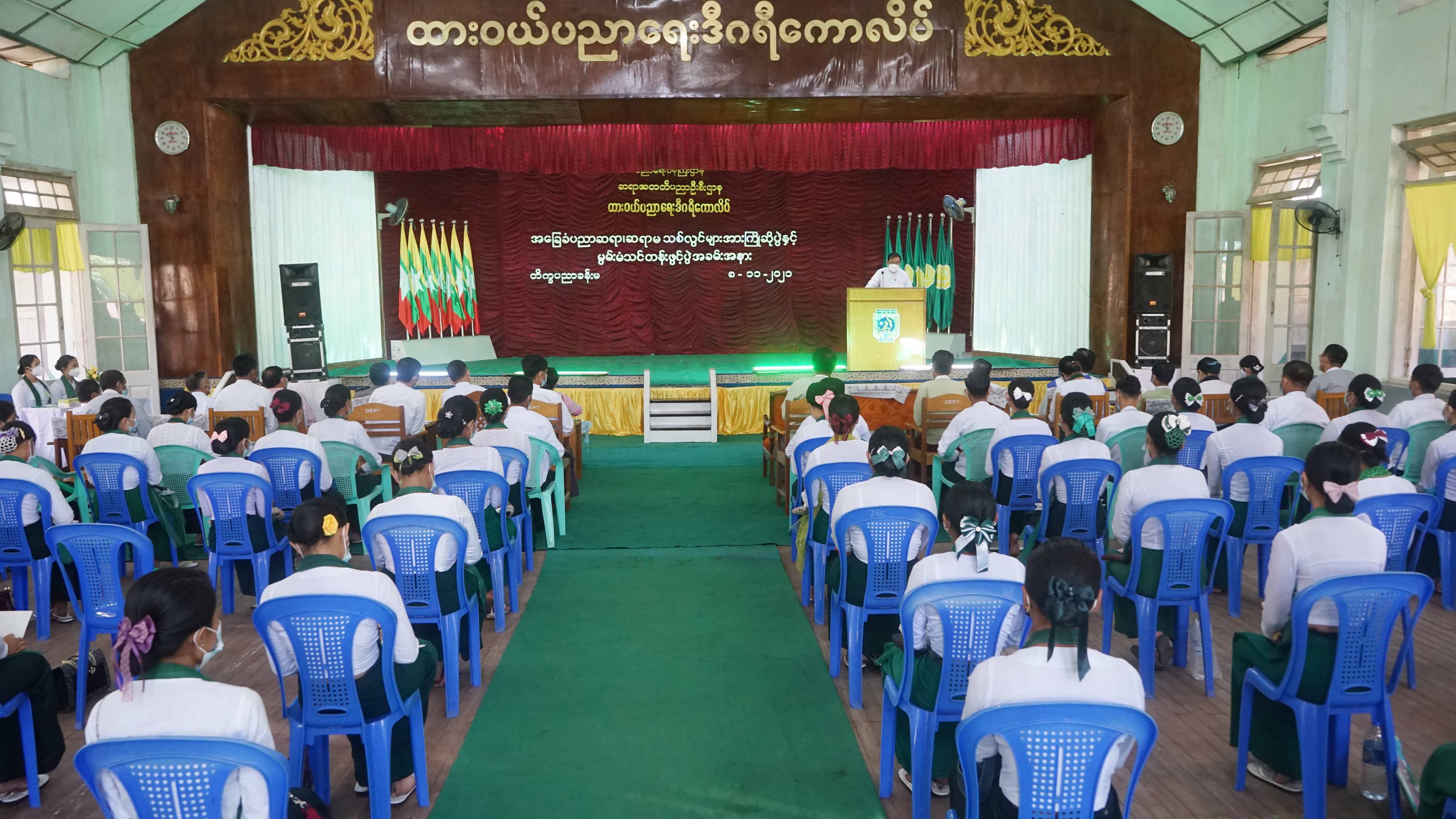 ပညာရေးဝန်ကြီးဌာန၊ အဆင့်မြင့်ပညာဦးစီးဌာနက ထားဝယ်ပညာရေး ဒီဂရီကောလိပ်တွင် တာဝန်ထမ်းဆောင်မည့် အခြေခံပညာ ဆရာ/ဆရာမ သစ်လွင်များကြိုဆိုပွဲနှင့် မွမ်းမံသင်တန်းဖွင့်ပွဲ အခမ်းအနားကို ယနေ့နံနက် ၁၀ နာရီက ထားဝယ်ပညာရေး ဒီဂရီကောလိပ်၊ ဘွဲ့နှင်းသဘင်ခန်းမ၌ ကျင်းပခဲ့ကြောင်း သိရသည်။