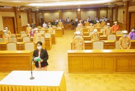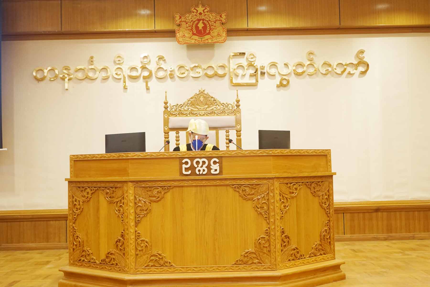 ထို့နောက် တနင်္သာရီတိုင်းဒေသကြီး တရားလွှတ်တော် တရားသူကြီးချုပ်က ကတိသစ္စာပြုကာ တိုင်းဒေသကြီးဝန်ကြီးချုပ်က တိုင်းဒေသကြီး တရားလွှတ်တော်တရားသူကြီးအဖြစ် ခန့်အပ် တာဝန်ပေးအပ်ရန် အမည်စာရင်းကို အဆိုပြုပေးပို့ထားသည့် ဒေါ်ချိုမာမြင့်၊ နိုင်ငံသားစိစစ်ရေး ကတ်ပြားအမှတ်၊ ၉/မမန(နိုင်)ဝ၃၄၉၆၂ ၏ အမည်စာရင်းကို တိုင်းဒေသကြီးလွှတ်တော်သို့ တင်သွင်းခြင်းတို့ကို ဆောင်ရွက်ခဲ့ကြပြီး အစည်းအဝေးကို ၁၀ နာရီ ၃၅ မိနစ် ခေတ္တရပ်နားသည်။