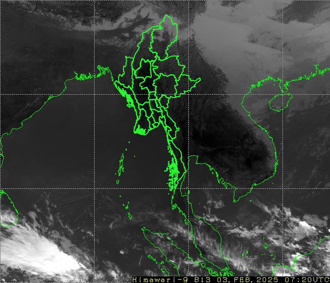 ယမန်နေ့နံနက်(၀၉:၃၀)နာရီအချိန်မှ ယနေ့နံနက်(၀၉:၃၀)နာရီအချိန်အထ မိုးလေဝသ တိုင်းထွာချက်အကျဉ်းချုပ်။ လွန်ခဲ့သော(၂၄)နာရီအတွင်းက စစ်ကိုင်းတိုင်းဒေသကြီးအထက်ပိုင်း၊ တနင်္သာရီတိုင်းဒေသကြီး၊ ကချင်ပြည်နယ်၊ ကရင်ပြည်နယ်နှင့် မွန်ပြည်နယ်တို့တွင် တိမ်အသင့်အတင့် ဖြစ်ထွန်းခဲ့ပြီး၊ ကျန်တိုင်းဒေသကြီးနှင့် ပြည်နယ်တို့တွင် အများအားဖြင့် သာယာခဲ့ပါသည်။ ညအပူချိန်များမှာ တနင်္သာရီတိုင်းဒေသကြီးနှင့် ကရင်ပြည်နယ်တို့တွင် ဖေဖော်ဝါရီလ၏ ပျမ်းမျှအပူချိန်တို့အောက် ၂ ဒီဂရီဆဲလ်စီးယပ် လျော့နည်းခဲ့ပြီး၊ ကျန်တိုင်းဒေသကြီးနှင့် ပြည်နယ်တို့တွင် ဖေဖော်ဝါရီလ၏ ပျမ်းမျှအပူချိန်ခန့်သာ ရှိခဲ့ပါသည်။ ထူးခြားသည့် ညအပူချိန်များမှာ နမ့်စန်မြို့(ရှမ်းပြည်နယ်တောင်ပိုင်း)တွင် ၁.၄ ဒီဂရီဆဲလ်စီးယပ်၊ ဟားခါးမြို့တွင် ၂.၀ ဒီဂရီဆဲလ်စီးယပ်၊ ဟဲဟိုးမြို့တွင် ၃.၄ ဒီဂရီဆဲလ်စီးယပ်၊ မိုင်းယန်းမြို့တွင် ၃.၈ ဒီဂရီဆဲလ်စီးယပ်၊ ပြင်ဦးလွင်မြို့တွင် ၃.၉ ဒီဂရီဆဲလ်စီးယပ်၊ လွိုင်လင်မြို့တွင် ၅.၀ ဒီဂရီဆဲလ်စီးယပ်၊ တီးတိန်မြို့တွင် ၅.၃ ဒီဂရီဆဲလ်စီးယပ်၊ ပင်လောင်းမြို့တွင် ၆.၇ ဒီဂရီဆဲလ်စီးယပ်၊ မြစ်ကြီးနားမြို့တွင် ၈.၅ ဒီဂရီဆဲလ်စီးယပ်နှင့် မိုင်းဆတ်မြို့တွင် ၈.၇ ဒီဂရီဆဲလ်စီးယပ်တို့ ဖြစ်ကြပါသည်။