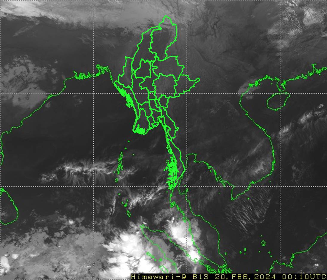 မိုးလေဝသနှင့်ဇလဗေဒညွှန်ကြားမှု ဦးစီးဌာနက ယနေ့နံနက် ထုတ်ပြန်သည့် မိုးလေဝသ သတင်းအရ ကပ္ပလီပင်လယ်ပြင်နှင့် ဘင်္ဂလားပင်လယ်အော်တောင်ပိုင်းတို့တွင် တိမ်အသင့်အတင့်မှ တိမ်ထူထပ်နေပြီး၊ ကျန်ဘင်္ဂလားပင်လယ်အော်တွင် တိမ်အနည်းငယ် ဖြစ်ထွန်းနေသည်။