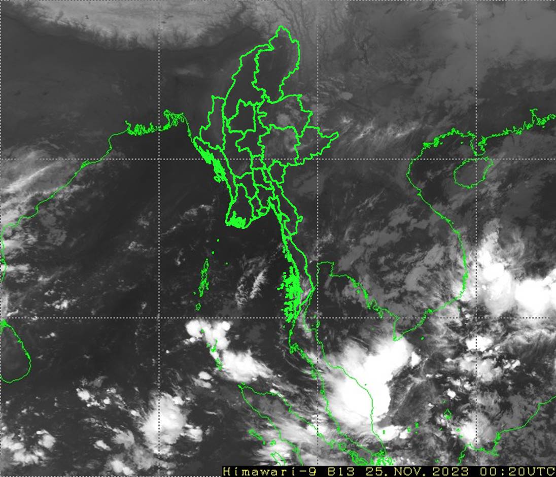 ယနေ့ညနေအထိ ခန့်မှန်းချက်အနေဖြင့် တနင်္သာရီတိုင်းဒေသကြီးနှင့် ရှမ်းပြည်နယ်တို့တွင် နေရာကွက်ကျား မိုးအနည်းငယ် ထစ်ချုန်းရွာနိုင်သည်။ ရွာရန်ရာနှုန်း(၆၀) ဖြစ်သည်။ ကျန်တိုင်းဒေသကြီးနှင့် ပြည်နယ်တို့တွင် တိမ်အသင့်အတင့် ဖြစ်ထွန်းမည်။