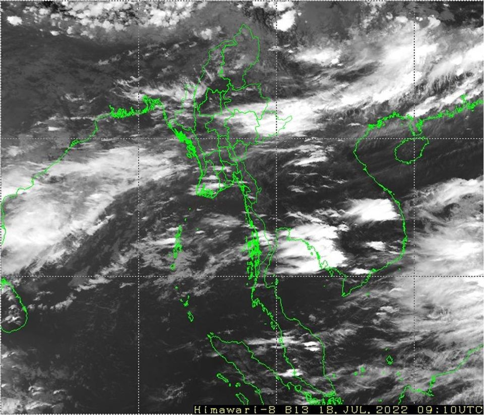ဘင်္ဂလားပင်လယ်အော်အ‌ခြေအနေမှာ ကပ္ပလီပင်လယ်ပြင်နှင့် ဘင်္ဂလားပင်လယ်အော်တို့တွင် မုတ်သုံလေအားအနည်းငယ်မှ အားအသင့်အတင့် ရှိနေပါသည်။