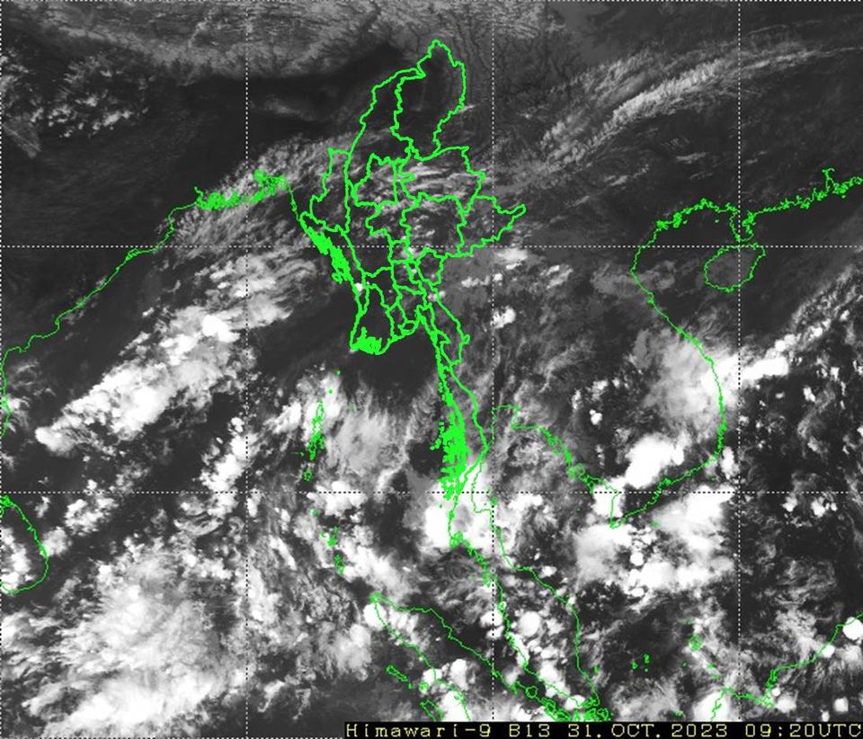 ဘင်္ဂလားပင်လယ်အော်အ‌ခြေအနေ။ ကပ္ပလီပင်လယ်ပြင်နှင့် ဘင်္ဂလားပင်လယ်အော်တို့တွင် တိမ်အသင့်အတင့်မှ တိမ်ထူထပ်နေပါသည်။