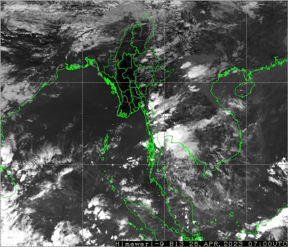 လွန်ခဲ့သော(၂၄)နာရီအတွင်းက တနင်္သာရီတိုင်းဒေသကြီးတွင် နေရာအနှံ့အပြား၊ ကချင်ပြည်နယ်တွင် နေရာစိပ်စိပ်၊ စစ်ကိုင်းတိုင်းဒေသကြီးအောက်ပိုင်းနှင့် ကယားပြည်နယ်တို့တွင် နေရာကျဲကျဲနှင့် စစ်ကိုင်းတိုင်းဒေသကြီးအထက်ပိုင်း၊ မကွေးတိုင်းဒေသကြီး၊ ပဲခူးတိုင်းဒေသကြီးနှင့် ရှမ်းပြည်နယ် (မြောက်ပိုင်း)တို့တွင် နေရာကွက်ကျား မိုးထစ်ချုန်းရွာခဲ့ပြီး ကျန်တိုင်းဒေသကြီးနှင့် ပြည်နယ်တို့တွင် တိမ်အသင့်အတင့် ဖြစ်ထွန်းခဲ့သည်။ နေ့အပူချိန်များမှာ ကချင်ပြည်နယ်၊ ရှမ်းပြည်နယ်(အရှေ့ပိုင်း)နှင့် မွန်ပြည်နယ်တို့တွင် ဧပြီလ၏ ပျမ်းမျှ အပူချိန်တို့ထက် (၅)ဒီဂရီစင်တီဂရိတ်၊ စစ်ကိုင်းတိုင်းဒေသကြီး အထက်ပိုင်း၊ ပဲခူးတိုင်းဒေသကြီး၊ ရန်ကုန်တိုင်းဒေသကြီး၊ ဧရာဝတီတိုင်းဒေသကြီး၊ တနင်္သာရီ တိုင်းဒေသကြီး၊ ရှမ်းပြည်နယ်(တောင်ပိုင်း)၊ ရခိုင်ပြည်နယ်နှင့် ကရင်ပြည်နယ်တို့တွင် ဧပြီလ၏ ပျမ်းမျှအပူချိန်တို့ထက် (၃)ဒီဂရီစင်တီဂရိတ်မှ (၄)ဒီဂရီစင်တီ ဂရိတ်အထိနှင့် နေပြည်တော်၊ စစ်ကိုင်းတိုင်းဒေသကြီးအောက်ပိုင်း၊ ရှမ်းပြည်နယ်(မြောက်ပိုင်း)နှင့် ကယားပြည်နယ်တို့တွင် ဧပြီလ၏ ပျမ်းမျှအပူချိန်တို့ထက် (၂)ဒီဂရီစင်တီဂရိတ်ပိုခဲ့ပြီး ကျန်တိုင်းဒေသကြီးနှင့် ပြည်နယ်တို့တွင် ဧပြီလ၏ ပျမ်းမျှအပူချိန်ခန့်သာရှိခဲ့သည်။