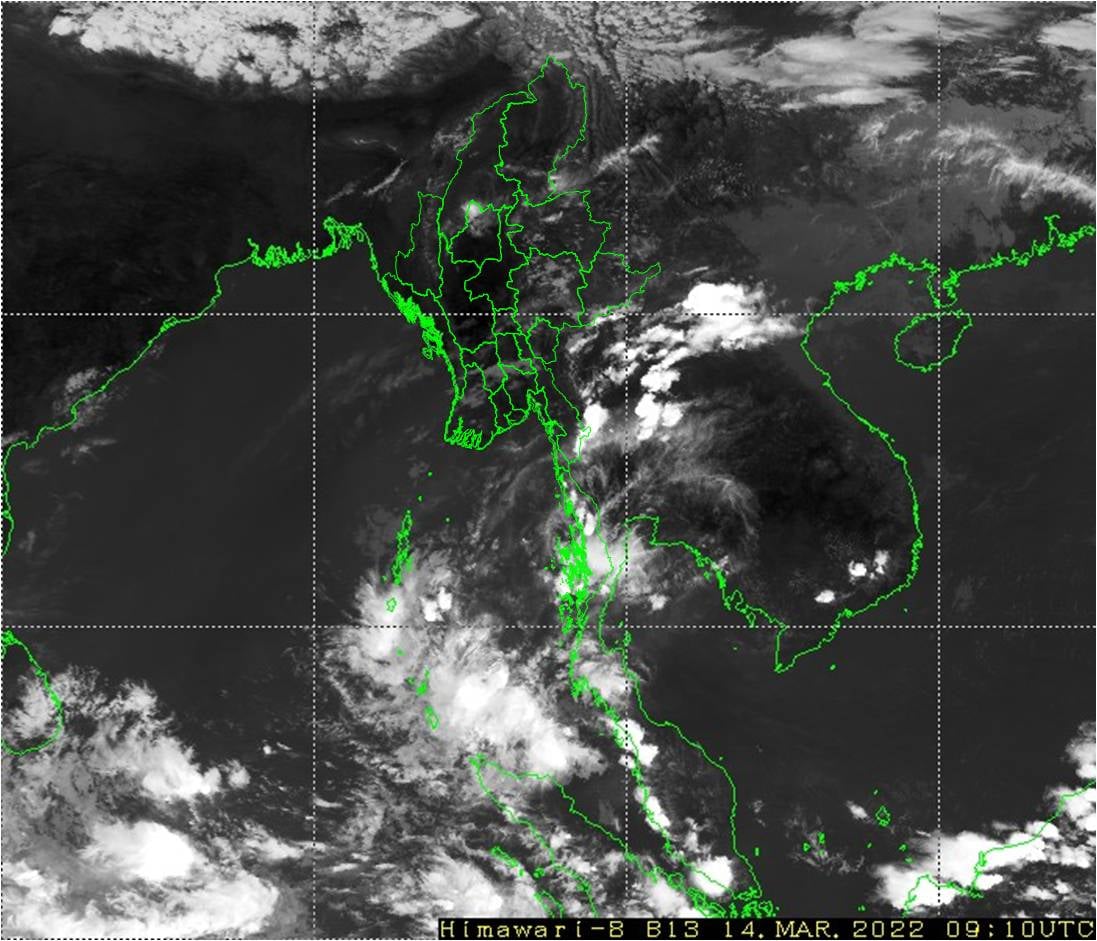 နောက်(၂)ရက်အတွက်ခန့်မှန်းချက်မှာ တနင်္သာရီတိုင်းဒေသကြီးတွင် နေရာကျဲကျဲနှင့် ကရင်ပြည်နယ်နှင့် မွန်ပြည်နယ်တို့တွင် နေရာကွက်ကျား မိုး ဆက်လက်ထစ်ချုန်းရွာနိုင်သည်။