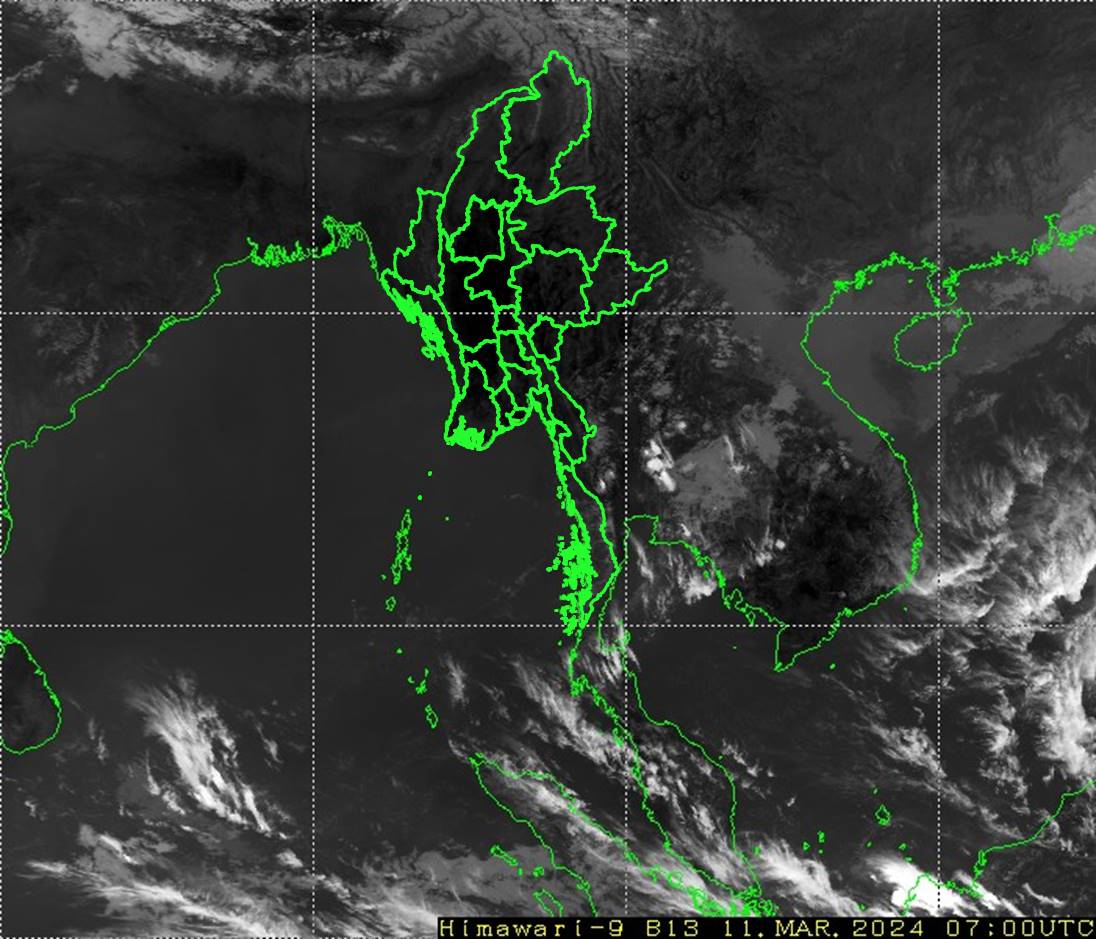 လွန်ခဲ့သော(၂၄)နာရီအတွင်းက တနင်္သာရီတိုင်းဒေသကြီးတွင် နေရာကွက်ကျား မိုးအနည်းငယ် ထစ်ချုန်းရွာခဲ့ပါသည်။ ကချင်ပြည်နယ်နှင့် မွန်ပြည်နယ်တို့တွင် တိမ်အသင့်အတင့် ဖြစ်ထွန်းခဲ့ပြီး၊ ကျန်တိုင်းဒေသကြီးနှင့် ပြည်နယ်တို့တွင် အများအားဖြင့် သာယာခဲ့ပါသည်။ နေ့အပူချိန်များမှာ ကချင်ပြည်နယ်တွင် မတ်လ၏ ပျမ်းမျှအပူချိန်ထက် (၃)ဒီဂရီဆဲလ်စီးယပ်နှင့် ပဲခူးတိုင်းဒေသကြီး၊ တနင်္သာရီတိုင်းဒေသကြီးနှင့် ရှမ်းပြည်နယ်(တောင်ပိုင်းနှင့် အရှေ့ပိုင်း)တို့တွင် မတ်လ၏ ပျမ်းမျှအပူချိန်တို့ထက် (၂)ဒီဂရီဆဲလ်စီးယပ်ပိုခဲ့ပြီး၊ ကျန်တိုင်းဒေသကြီးနှင့် ပြည်နယ်တို့တွင် မတ်လ၏ ပျမ်းမျှအပူချိန်ခန့်သာ ရှိခဲ့ပါသည်။ ထူးခြားသည့် နေ့အပူချိန်များမှာ ချောက်မြို့၊ ပြည်မြို့၊ တောင်ငူမြို့၊ ဇောင်းတူမြို့၊ လေးထပ်ပြင်မြို့၊ ခရမ်းမြို့နှင့် ဘားအံမြို့တို့တွင် (၃၉)ဒီဂရီဆဲလ်စီးယပ်စီ တို့ဖြစ်ကြပါသည်။ မှတ်သားဖွယ်ရာ မိုးရေချိန်မှာ မြိတ်မြို့တွင် (၀.၀၄)လက်မ ဖြစ်ပါသည်။