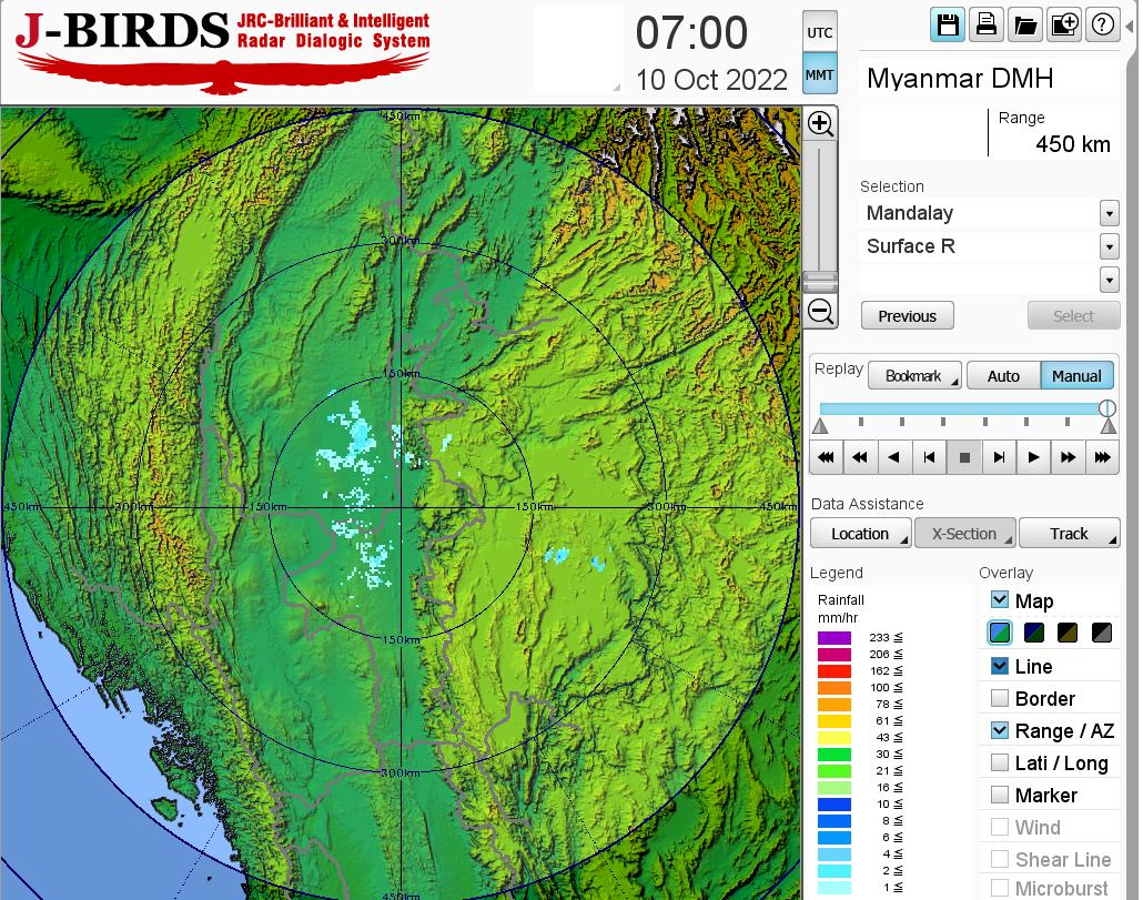 ယနေ့ညနေအထိ ခန့်မှန်းချက်အနေဖြင့် နေပြည်တော်၊ စစ်ကိုင်းတိုင်းဒေသကြီး အောက်ပိုင်း၊ ရန်ကုန်တိုင်းဒေသကြီး၊ ဧရာဝတီတိုင်းဒေသကြီးနှင့် ရခိုင်ပြည်နယ်တို့တွင် နေရာကျဲကျဲ၊ စစ်ကိုင်းတိုင်းဒေသကြီး အထက်ပိုင်း၊ မန္တလေးတိုင်းဒေသကြီး၊ မကွေးတိုင်းဒေသကြီး၊ ပဲခူးတိုင်းဒေသကြီး၊ ကချင်ပြည်နယ်၊ ရှမ်းပြည်နယ်၊ ချင်းပြည်နယ်နှင့် ကယားပြည်နယ်တို့တွင် နေရာစိပ်စိပ်နှင့် ကျန်တိုင်းဒေသကြီးနှင့် ပြည်နယ်တို့တွင် နေရာအနှံ့အပြား မိုးထစ်ချုန်းရွာပြီး၊ တနင်္သာရီတိုင်းဒေသကြီးတွင် နေရာကွက်၍ မိုးကြီးနိုင်သည်။ ရွာရန်ရာနှုန်းပြည့် ဖြစ်သည်။