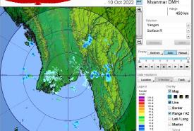 နေပြည်တော်၊ မန္တလေးမြို့ နှင့် ရန်ကုန်မြို့ အနီးတစ်ဝိုက်အတွက် ယနေ့ညနေထိ ခန့်မှန်းချက်အနေဖြင့် နေရာကွက်ကျား မိုးထစ်ချုန်းရွာမည်။ ရွာရန်ရာနှုန်းပြည့် ဖြစ်သည်။