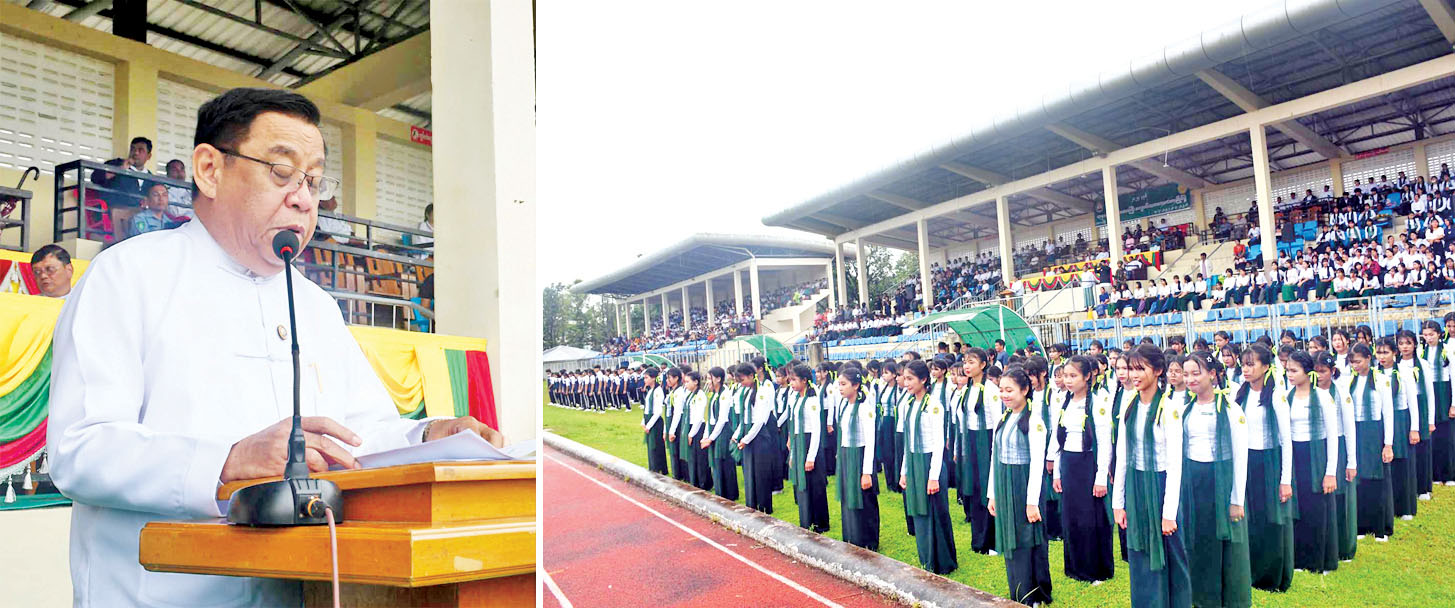 ဆက်လက်၍ တိုင်းဒေသကြီး ဝန်ကြီးချုပ် ဦးမြတ်ကိုက ယနေ့ ကျင်းပသည့် တိုင်းဒေသကြီးအဆင့် အသက်(၁၈)နှစ်အောက် အခြေခံပညာ ကျောင်းသားအားကစားပြိုင်ပွဲသည် ၂၀၂၅ ခုနှစ် နိုဝင်ဘာ ၂၀ ရက်မှ ၂၉ ရက်အထိ ဘရူနိုင်းနိုင်ငံတွင် ကျင်းပပြုလုပ်မည့်(၁၄)ကြိမ်မြောက် အာဆီယံ ကျောင်းသားအားကစားပွဲတော်တွင် သွားရောက်ပါဝင်ယှဉ်ပြိုင်နိုင်ရန်အတွက် တိုင်းဒေသကြီးလက်ရွေးစင်များ ရွေးချယ်နိုင်ရန် ကျင်းပခြင်းဖြစ်သကဲ့သို့ နိုင်ငံတော်က အားထားရသော ထူးချွန်ထက်မြက်သည့် မျိုးဆက်သစ်လက်ရွေးစင်အားကစားသမား မောင်မယ်များ ပေါ်ထွက်လာရေး မျှော်မှန်းပြီး ကျင်းပဆောင်ရွက်ပေးသည့် ပွဲတစ်ပွဲဖြစ်ကြောင်း၊ ထို့ကြောင့် အစွမ်းကုန်ကြိုးစားသွားကြရန် လိုအပ်ကြောင်း ပြောကြားသည်။ ထို့နောက် ပြိုင်ပွဲဝင်အသင်းများက အားကစားသစ္စာ အဓိဋ္ဌာန် (၄)ချက် ရွတ်ဆို၍ ကွင်းအတွင်းမှ ပြန်လည်ထွက်ခွာကာ ကျောင်းသား ကျောင်းသူများက ဘင်ခရာအဖွဲ့၊ ပန်းဖွားအဖွဲ့၊ Fitness Dance အက၊ “တို့ပြည်ထောင်စုအတွက်” သီချင်းများဖြင့် ကပြဖျော်ဖြေကြသည်။