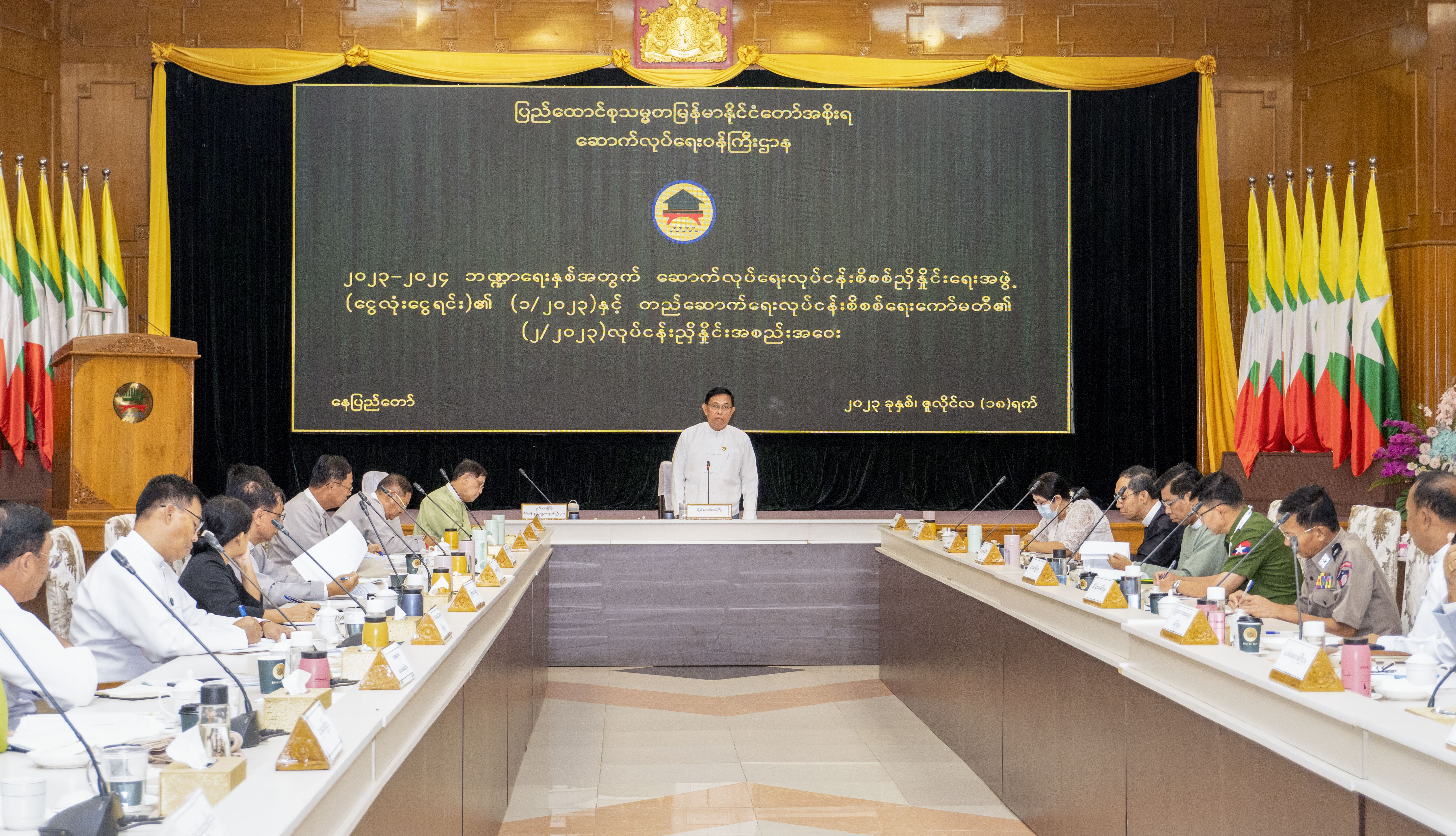 လုပ်ငန်းညှိနှိုင်း အစည်းအဝေးတွင် တည်ဆောက်ရေးလုပ်ငန်းစိစစ်ရေး ကော်မတီဥက္ကဋ္ဌ ၊ ဆောက်လုပ်ရေးဝန်ကြီးဌာန ပြည်ထောင်စုဝန်ကြီး ဦးမျိုးသန့် က နိုင်ငံတော်ဘဏ္ဍာငွေဖြင့် ဆောင်ရွက်သော နိုင်ငံတစ်ဝှမ်းရှိ တည်ဆောက်ရေးလုပ်ငန်းများ စနစ်တကျဖြစ်စေရေး၊ သတ်မှတ်စံချိန်စံညွှန်းနှင့်အညီ အရည်အသွေးပြည့်မီရေး ၊ နိုင်ငံတော်ဘဏ္ဍာငွေများ လေလွင့်ဆုံးရှုံးမှု မရှိစေရေး ၊ အသုံးစရိတ်များ ဟန်ချက်ညီညီ ဆောင်ရွက်နိုင်ရေး ၊ ရခိုင်ပြည်နယ်တွင် မိုခါမုန်တိုင်းဒဏ်ကြောင့် ပျက်စီးသွားသော အဆောက်အဦများပြန်လည်ပြုပြင်ခြင်းနှင့် ပြန်လည်ထူထောင်ရေး လုပ်ငန်းများဆောင်ရွက်ရာတွင် စီမံကိန်းနှင့်ဘဏ္ဍာရေးဝန်ကြီးဌာနမှ ထုတ်ပြန်ထားသော ညွှန်ကြားချက်များ၊ ဘဏ္ဍာရေးဆိုင်ရာ စည်းမျဉ်းစည်းကမ်းများ၊ လုပ်ထုံးလုပ်နည်းများနှင့်အညီ လိုက်နာဆောင်ရွက်ရေးတို့အတွက် ပြည်ထောင်စုအဆင့် ဗဟိုအဖွဲ့အစည်းများ၊ ပြည်ထောင်စုဝန်ကြီးဌာနများနှင့် ယနေ့အစည်းအဝေးကို ကျင်းပခြင်းဖြစ်ပါကြောင်း။