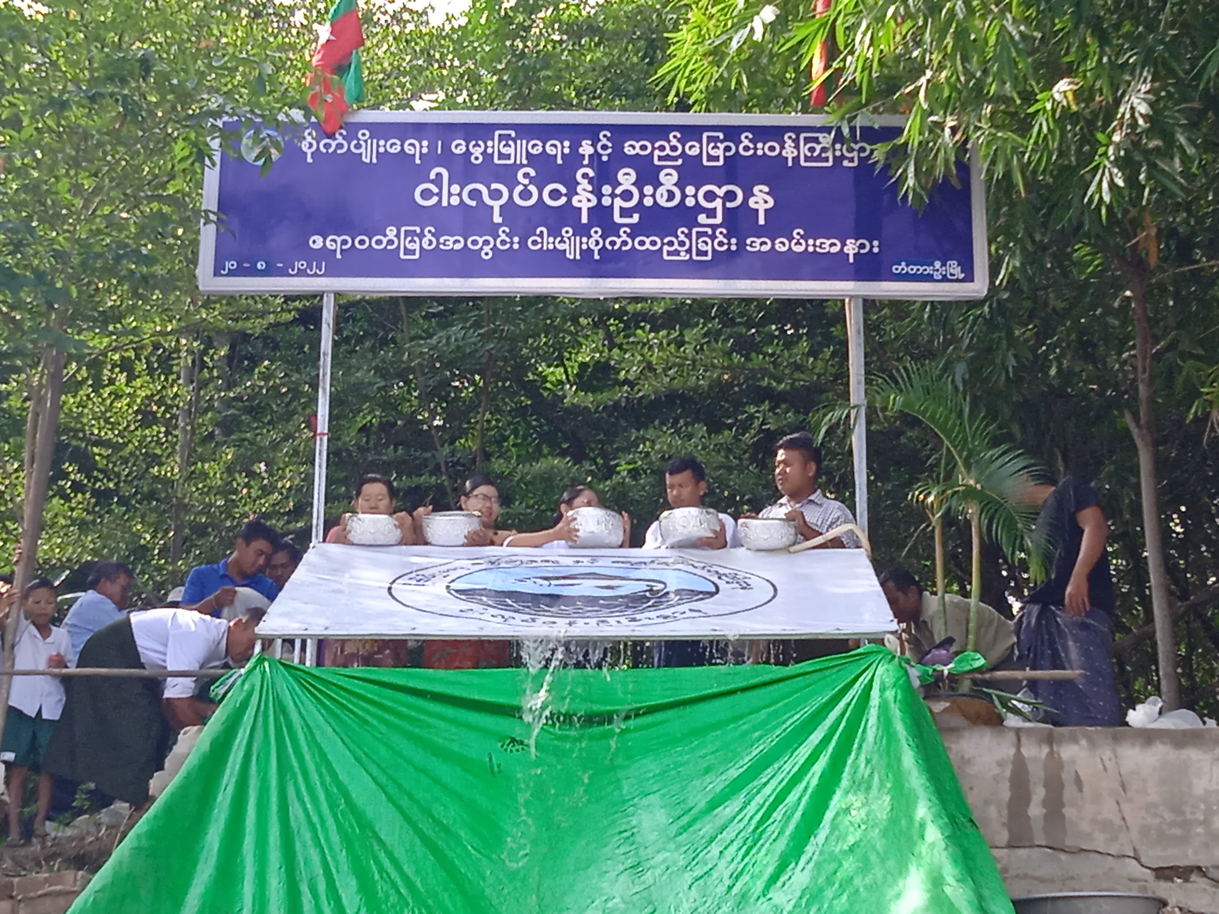 ထိုသို့ ငါးမျိုးစိုက်ထည့်ရာသို့ ကျောက်ဆည်ခရိုင် ငါးလုပ်ငန်းဦးစီးဌာနမှ လက်ထောက်ညွှန်ကြားရေမှူး ဒေါ်ခိုင်ခိုင်ဝင်းနှင့် တာဝန်ရှိသူများက ဧရာဝတီမြစ် သဘာဝရေလျှံကွင်းအတွင်းသို့ ငါးခုံးမကြီး သားပေါက်ကောင် (၂)သိန်း၊ ငါးမြစ်ချင်း ငါးသားပေါက်ကောင် (၄)သိန်း စုစုပေါင်း ငါးသားပေါက်ရေ (၆)သိန်းတို့အား စိုက်ထည့်ပေးကြသည်။