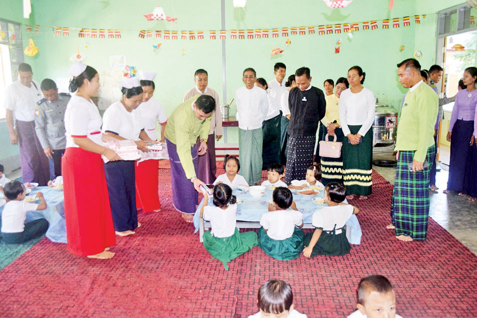 ထို့နောက် ခရိုင်စီမံခန့်ခွဲရေးနှင့် အုပ်ချုပ်ရေးကော်မတီဥက္ကဋ္ဌနှင့်အဖွဲ့သည် အာဟာရကျွေးမွေးနေမှုကို လှည့်လည်ကြည့်ရှု အားပေးကာ KG တန်းမှ ကလေးငယ်များအား သွားတိုက်ဆေး၊ သွားတိုက်တံများကို အခမဲ့ ပေးအပ်ခဲ့ကြောင်း သိရသည်။