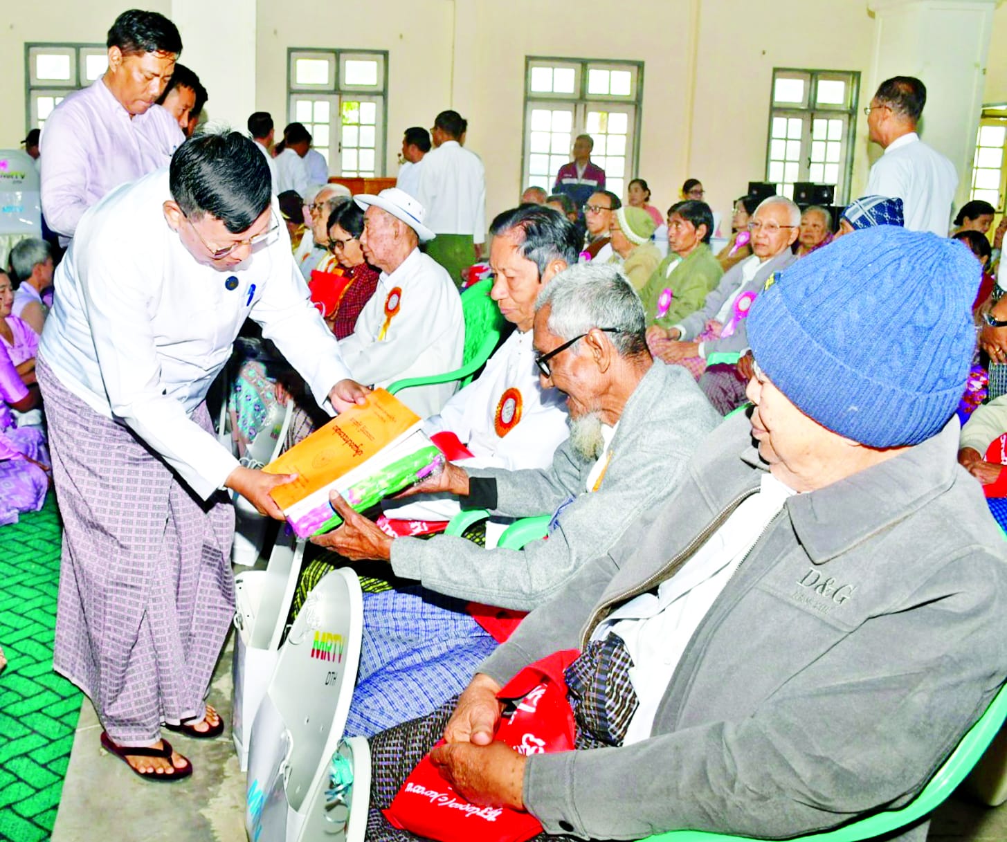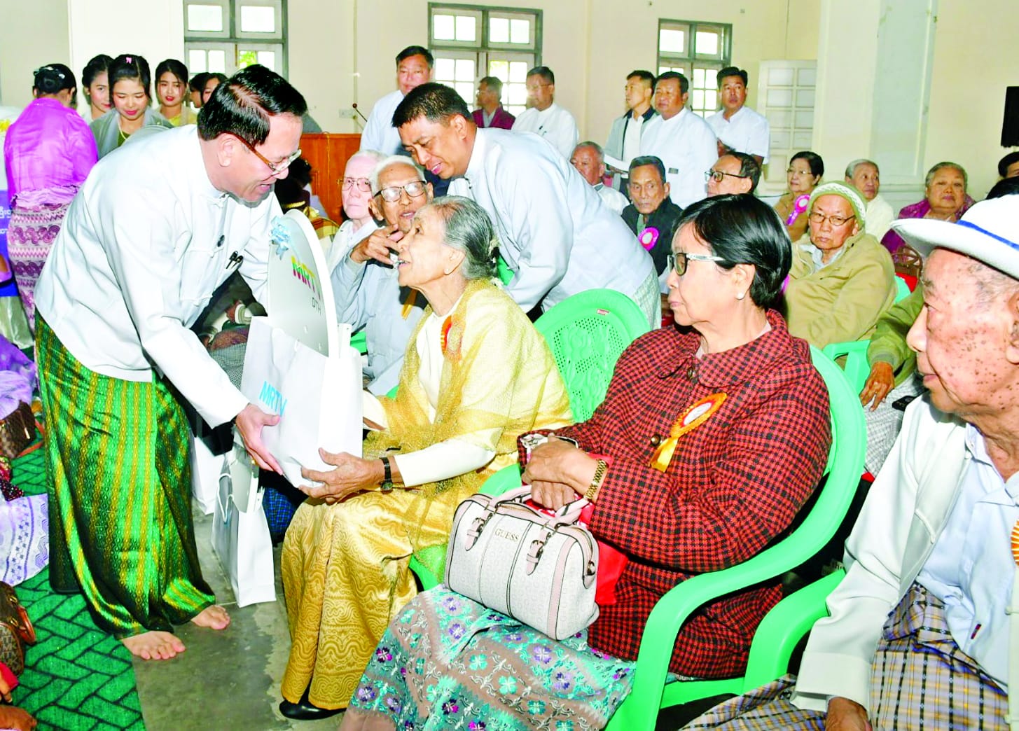 ဆက်လက်၍ ပြည်ထောင်စုဝန်ကြီး ဦးမောင်မောင်အုန်း၊ ဦးတင်ဦးလွင်နှင့် တာဝန်ရှိသူများက အသက် ၇၅ နှစ်နှင့် အထက်ဆရာကြီး၊ ဆရာမကြီးများကို MRTV DTH စလောင်း၊ ဆက်စပ်ပစ္စည်းများနှင့် လက်ဆောင်ပစ္စည်းများ ပေးအပ်လှူဒါန်းပြီး ကျောင်းသား ကျောင်းသူများအား ဗလာစာအုပ်များနှင့် ကျောင်းသုံးကိရိယာများ ပေးအပ်သည်။