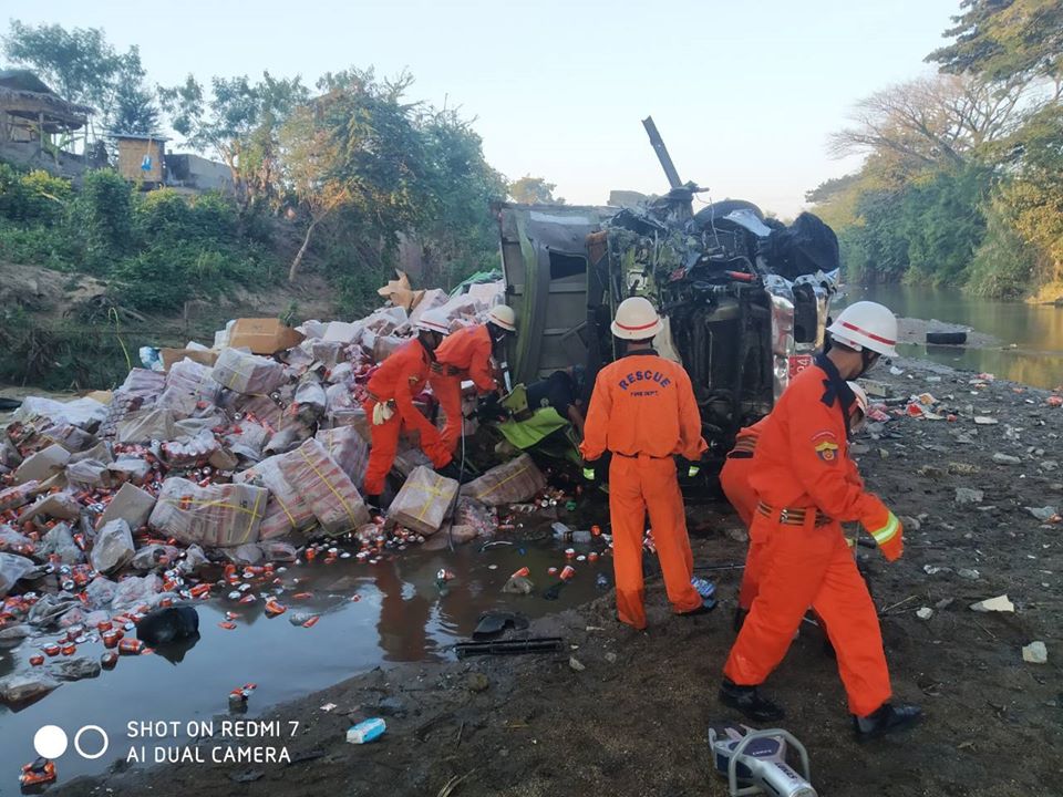နေပြည်တော်  ဥတ္တရခရိုင် တပ်ကုန်းမြို့နယ်  ကင်းသာရွာလမ်းခွဲ ၊ မိုင်တိုင်အမှတ် (၂၄၅/၇)၊ အဆုံချောင်း တံတားအနီးတွင် ရန်ကုန် မှ မန္တလေးသို့ မောင်းနှင်လာသော စိမ်းနုရောင် (၁၂)ဘီးယာဉ်နှင့် မန္တလေး မှ ရန်ကုန်သို့ မောင်းနှင်လာသော အဝါရောင်(၂၂)ဘီး နောက်တွဲယာဉ်တို့ မျက်နှာချင်းဆိုင်တိုက်မိပြီး (၁၂)ဘီးယာဉ်သည် အဆုံတံတားအောက်သို့ ထိုးကျတိမ်းမှောက်မှု ဖြစ်ပွားကြောင်း  မြန်မာနိုင်ငံမီးသတ်တပ်ဖွဲ့မှ သတင်းသိရသည်။