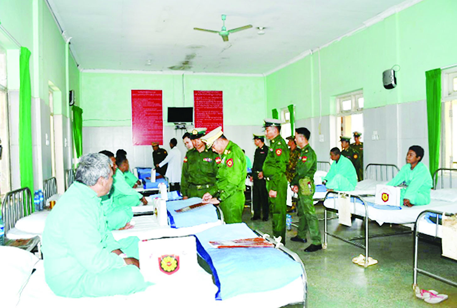 ရှမ်းပြည်နယ်(တောင်ပိုင်း) ခိုလမ်မြို့ရှိ နယ်မြေခံဆေးတပ်ရင်း၊ ရန်ကုန်တိုင်းဒေသကြီး မင်္ဂလာဒုံမြို့နယ်ရှိ တပ်မတော် အရိုးရောဂါ အထူးကုဆေးရုံကြီး(ခုတင်-၅၀၀)နှင့် တပ်မတော်ဆေးရုံကြီး (ခုတင်-၁၀၀၀)၊ တနင်္သာရီတိုင်း ဒေသကြီး ကလိန်အောင်မြို့ရှိ တပ်မတော်ဆေးရုံနှင့် စစ်ကိုင်းတိုင်းဒေသကြီး ကလေးမြို့နယ်ရှိ တပ်မတော်ဆေးရုံတို့၌ တက်ရောက်ကုသမှု ခံယူလျက်ရှိသော အရာရှိ၊ စစ်သည်၊ မိသားစုများ၊ စစ်မှုထမ်းဟောင်းအဖွဲ့ဝင်များ၊ မြန်မာနိုင်ငံ ရဲတပ်ဖွဲ့ဝင်များ၊ ပြည်သူစစ်(ဌာနေ)တပ်ဖွဲ့ဝင်များ၊ ဒေသခံပြည်သူများအား ယနေ့တွင် သက်ဆိုင်ရာ တိုင်းစစ်ဌာန ချုပ်များမှ တိုင်းမှူးများနှင့် တာဝန်ရှိသူများက သွားရောက် ကြည့်ရှု၍ တစ်ဦးချင်း၏ ရောဂါဖြစ်ပွားမှု၊ ဆေးဝါးကုသပေး ထားမှုနှင့် ကျန်းမာရေးတိုးတက်ကောင်းမွန်မှု အခြေအနေများကို မေးမြန်းအားပေးစကားပြောကြားပြီး အာဟာရဖြည့် စားသောက်ဖွယ်ရာများနှင့် ချီးမြှင့်ငွေများ ပေးအပ်သည်။